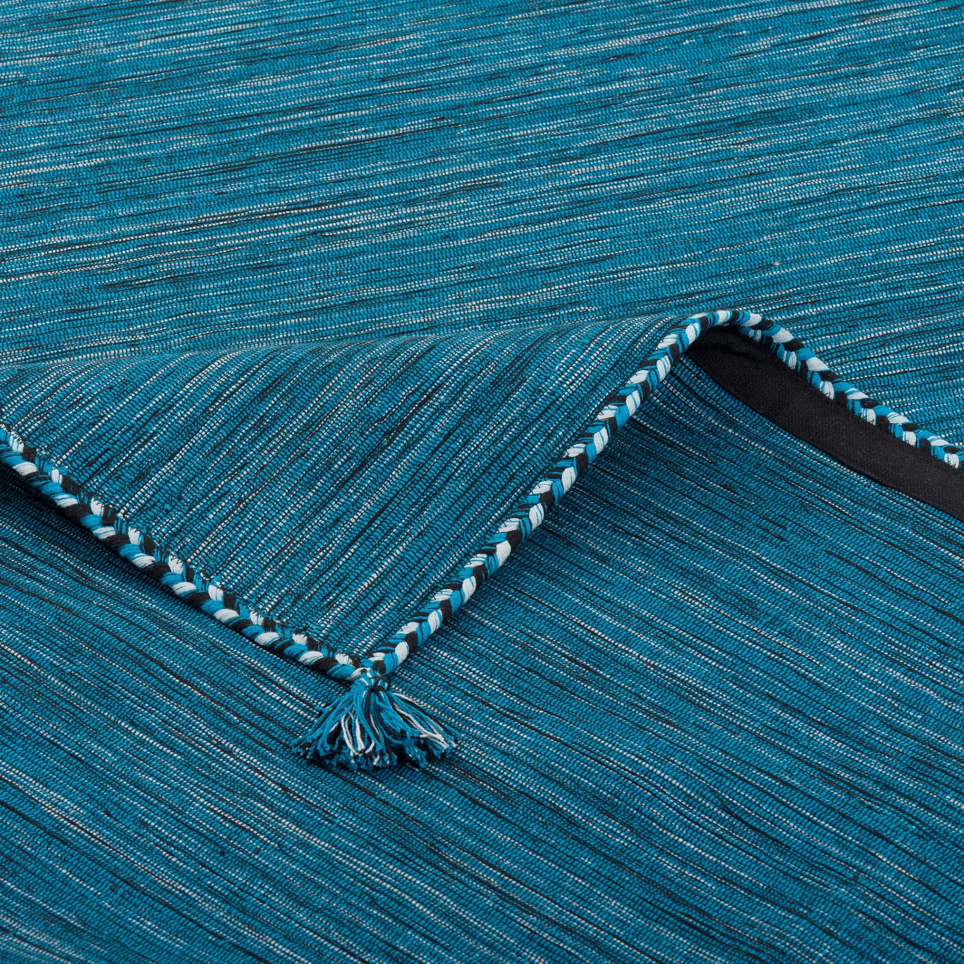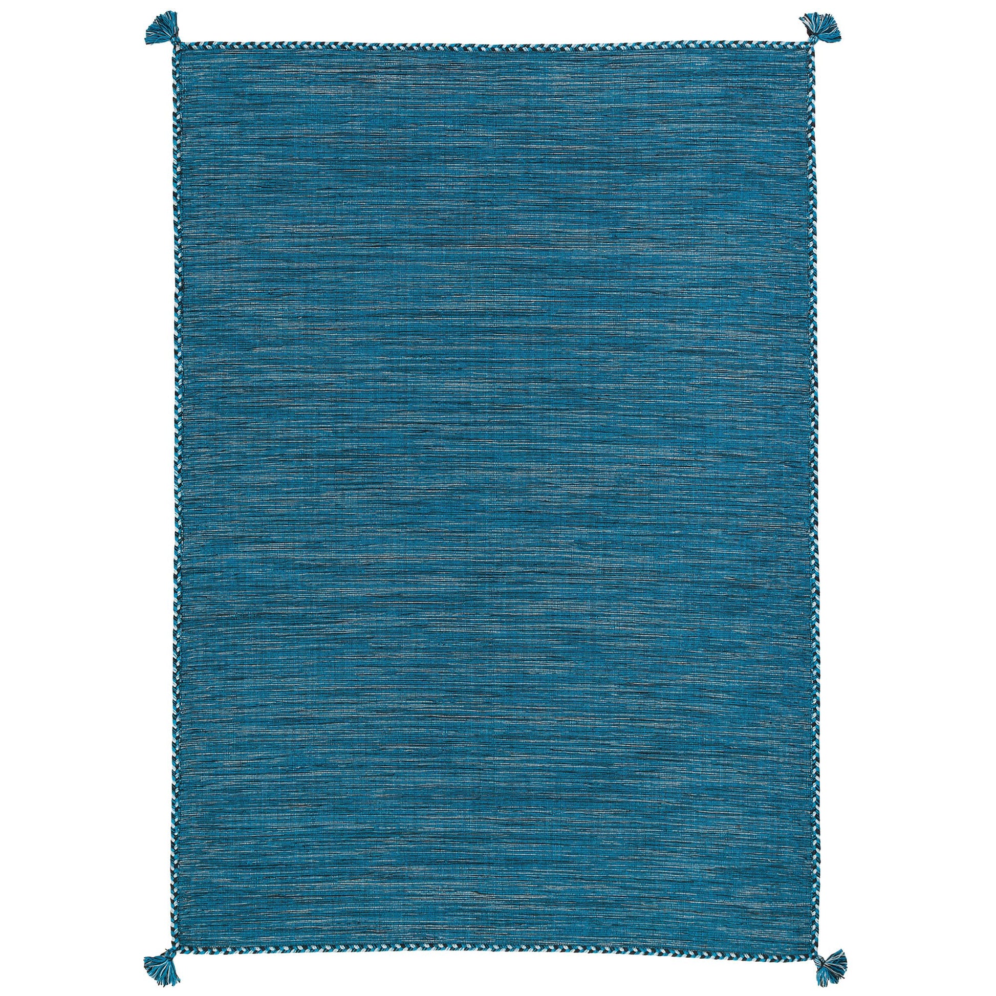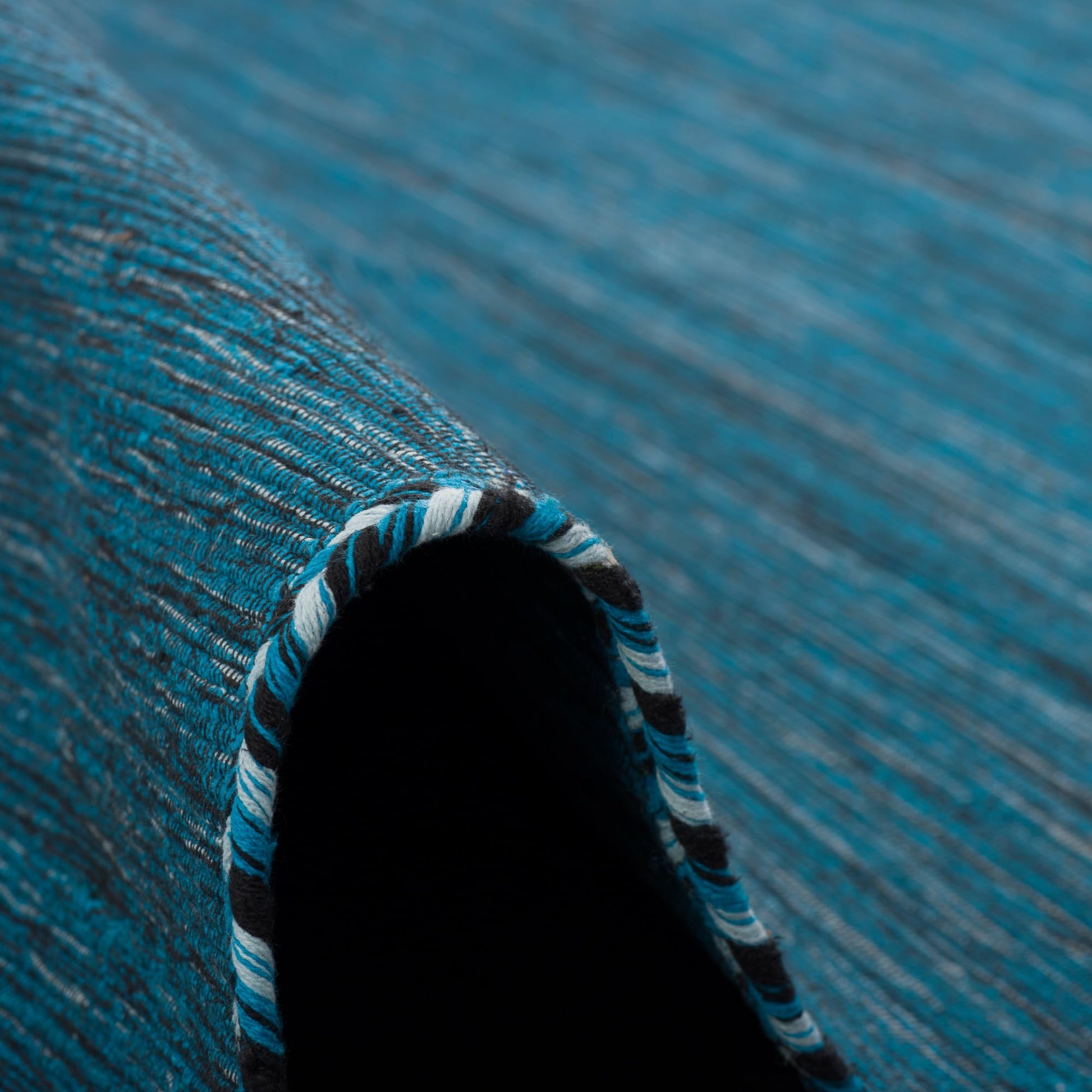 Dank der erstklassigen Verarbeitung von Hand erhält der Teppich eine besonders lebendige und hochwertige Haptik, die man bei jedem Schritt spürt. Das traditionelle Kelim-Muster, interpretiert in topaktuellen Trendfarben wie Blau und Petrol, schafft eine einzigartige Atmosphäre und verleiht Ihren Räumen eine moderne und zugleich ausserordentlich gemütliche Note.