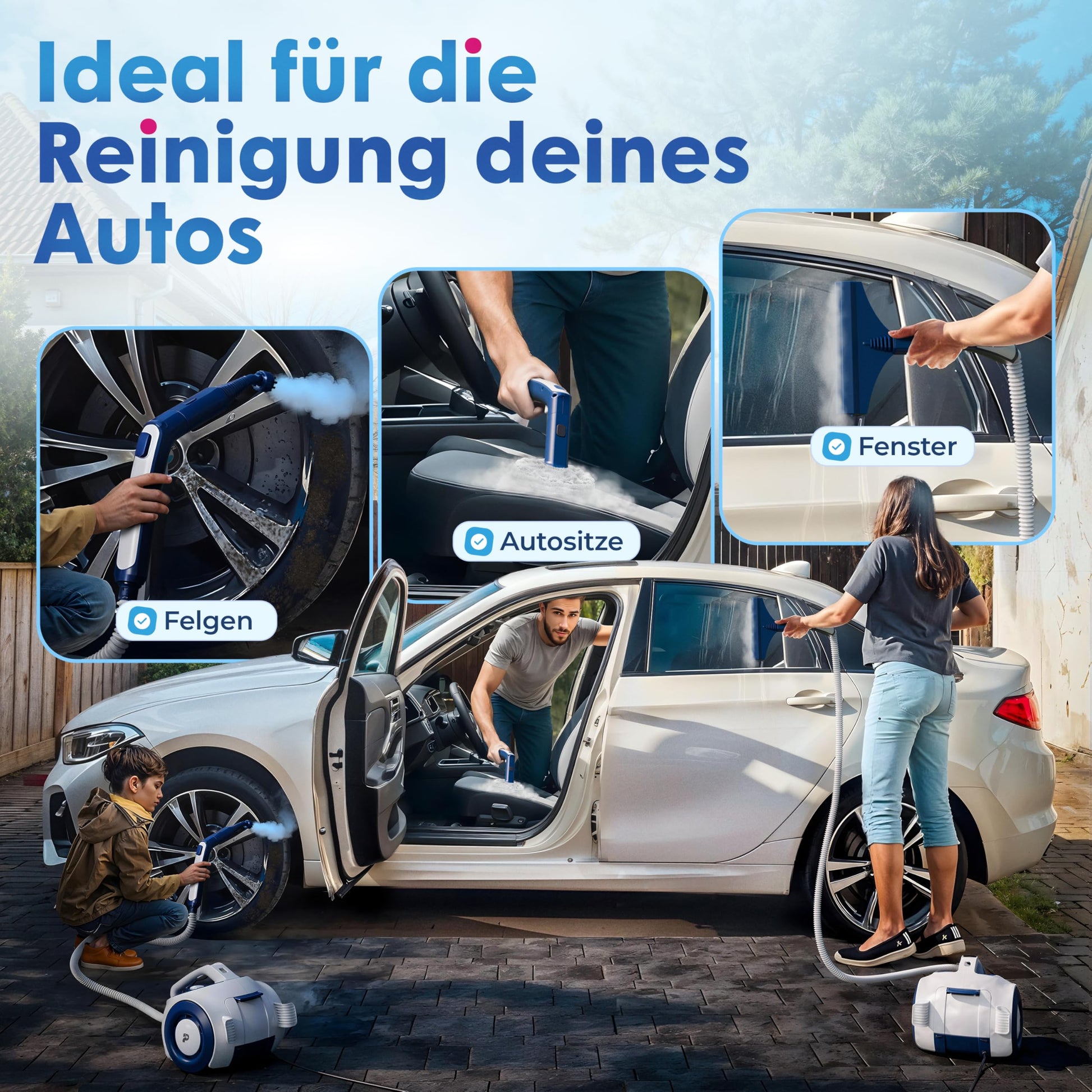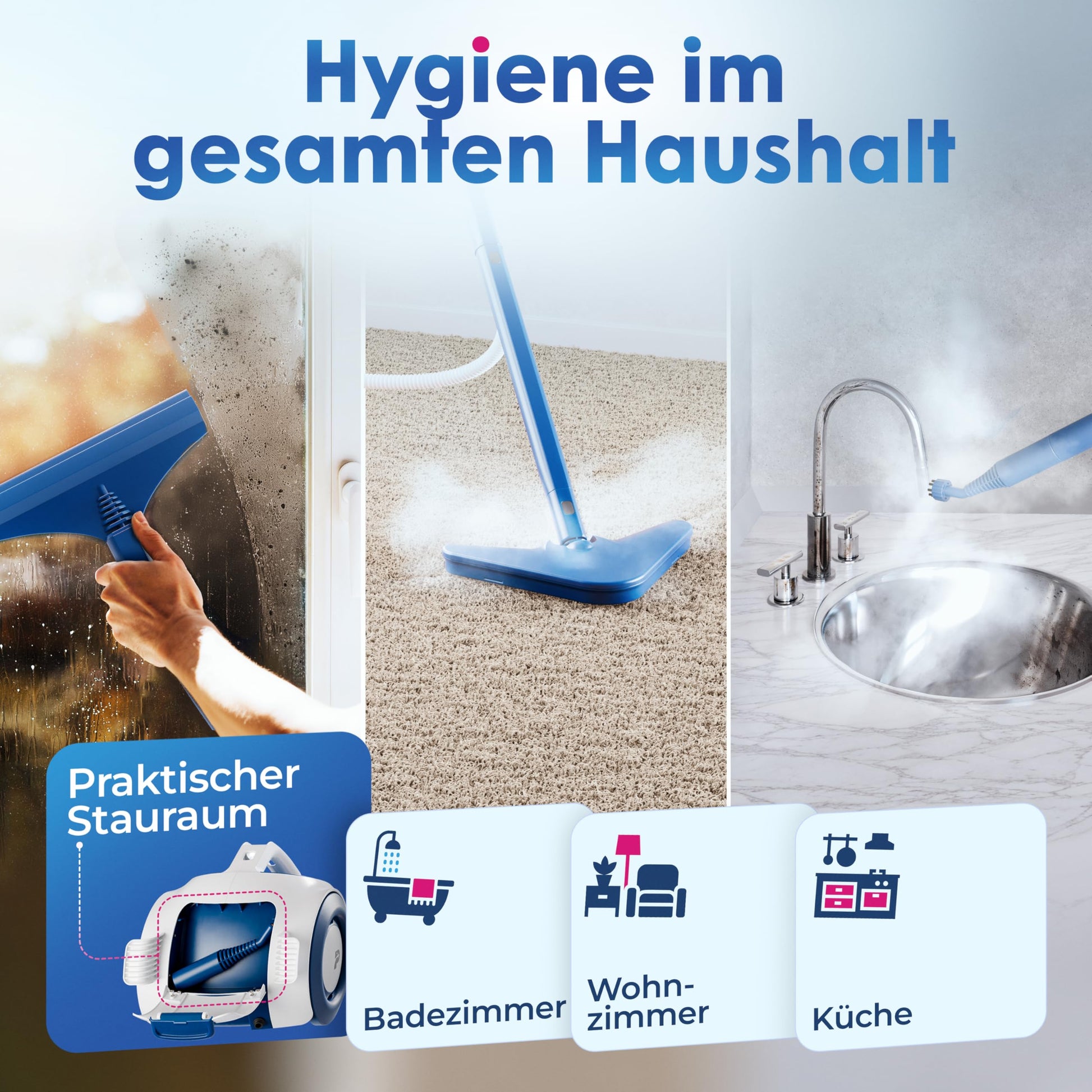 - Umfangreiches Zubehör: Ein 16-teiliges Zubehörset macht diesen Dampfreiniger zu einem wahren Multitalent für unzählige Anwendungsbereiche im Haus und sogar im Auto.