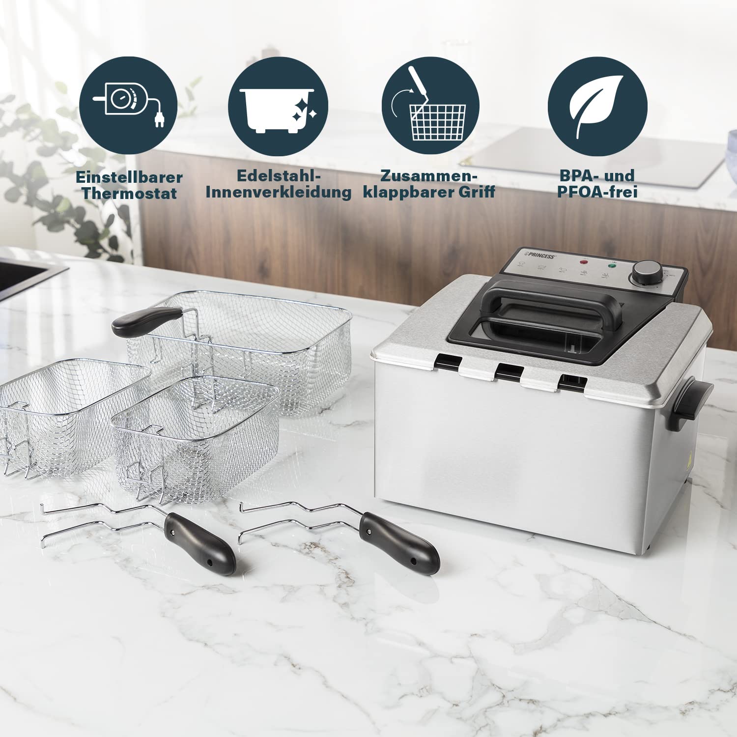 Princess Fritteuse 185000 Tiefe Fritteuse - 5L, Kaltzone, 3 Körbe