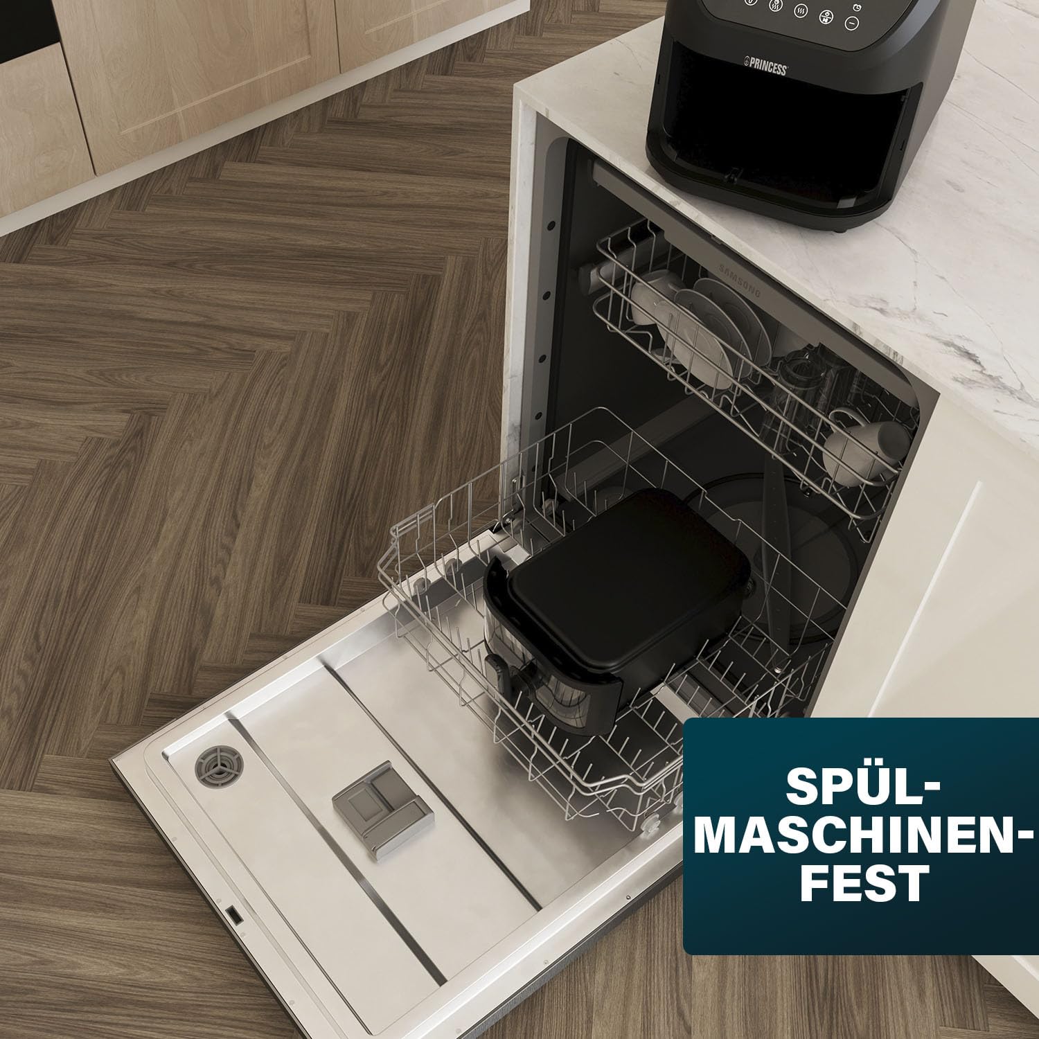 - Sicherheit & Komfort: Spülmaschinenfester Korb, PFAS-freie Materialien, hitzebeständiges Gehäuse und eine automatische Abschaltfunktion.