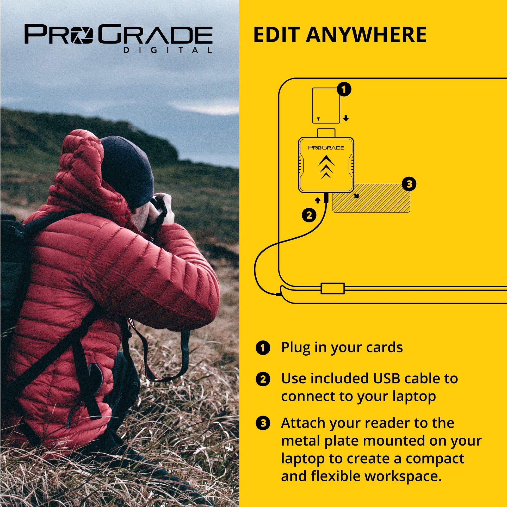Die Fähigkeit, Daten von zwei unterschiedlichen Kartentypen gleichzeitig zu transferieren, verdoppelt Ihre Effizienz im Handumdrehen. Egal ob im Studio, auf Reisen oder an einem entlegenen Drehort – die clevere magnetische Befestigung macht diesen Kartenleser zum perfekten Begleiter für eine kompakte und mobile Arbeitsstation.