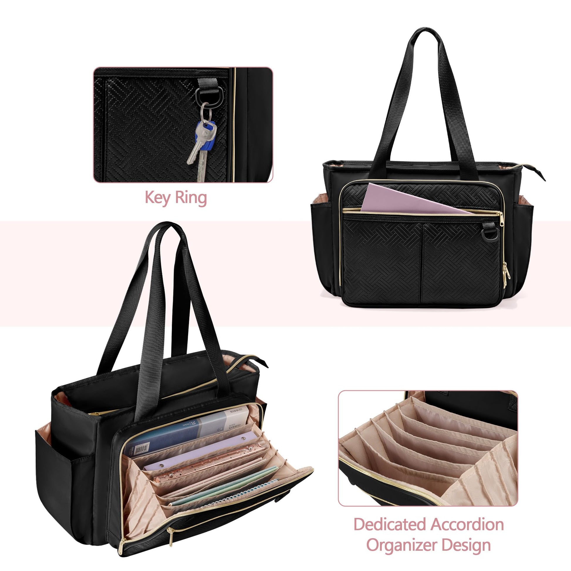 Prokva Lehrertasche mit Akkordeon-Aktenfach - Schwarz
