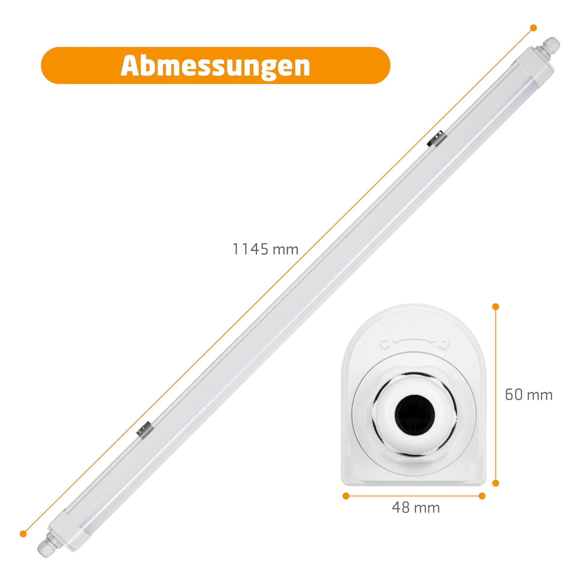 Proventa LED Feuchtraumleuchte 120cm 4er Pack IP65 36W 4000K