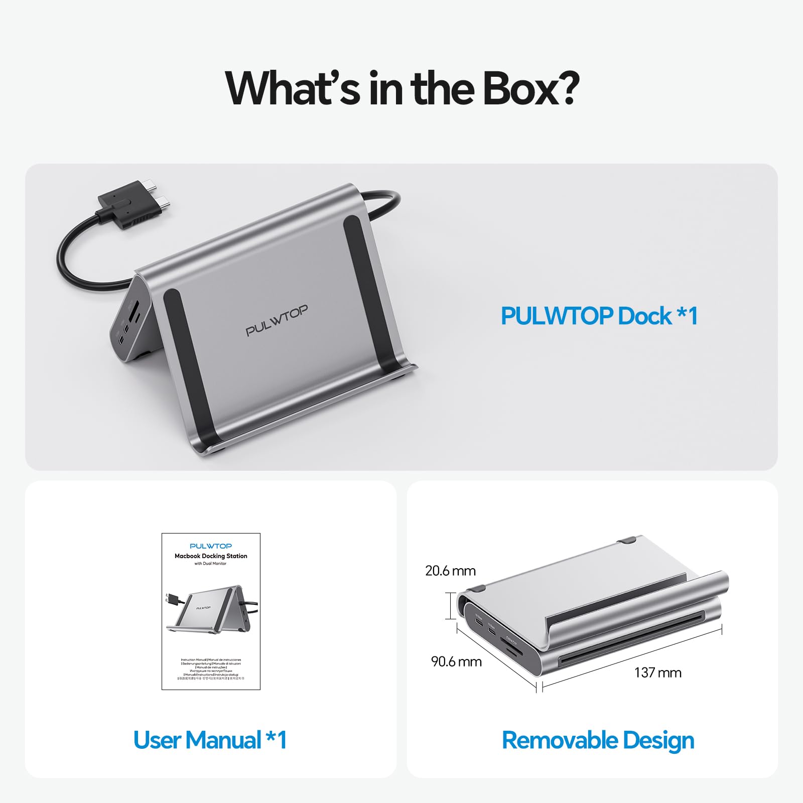 PULWTOP MacBook Docking Station Dual Monitor 4K M3/M4/M5