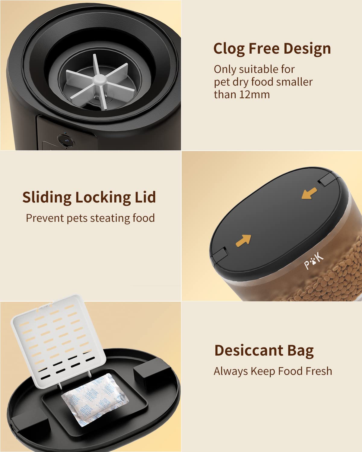 - Einfache Reinigung: Futterbehälter, Deckel und die Futterschale aus Edelstahl sind abnehmbar und leicht zu reinigen.