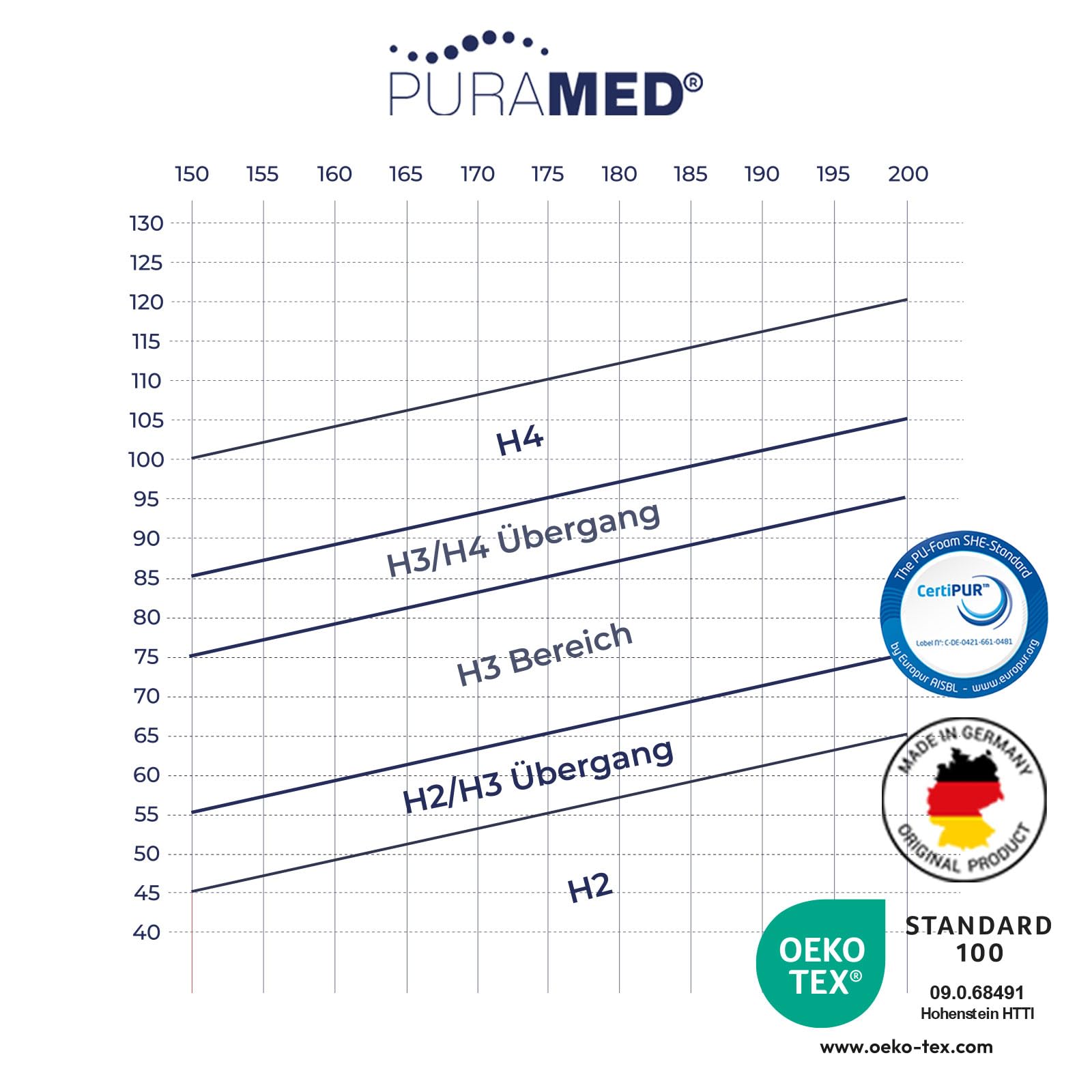 - Härtegrad: H4 (extra fest), empfohlen für ein Körpergewicht bis 120 kg