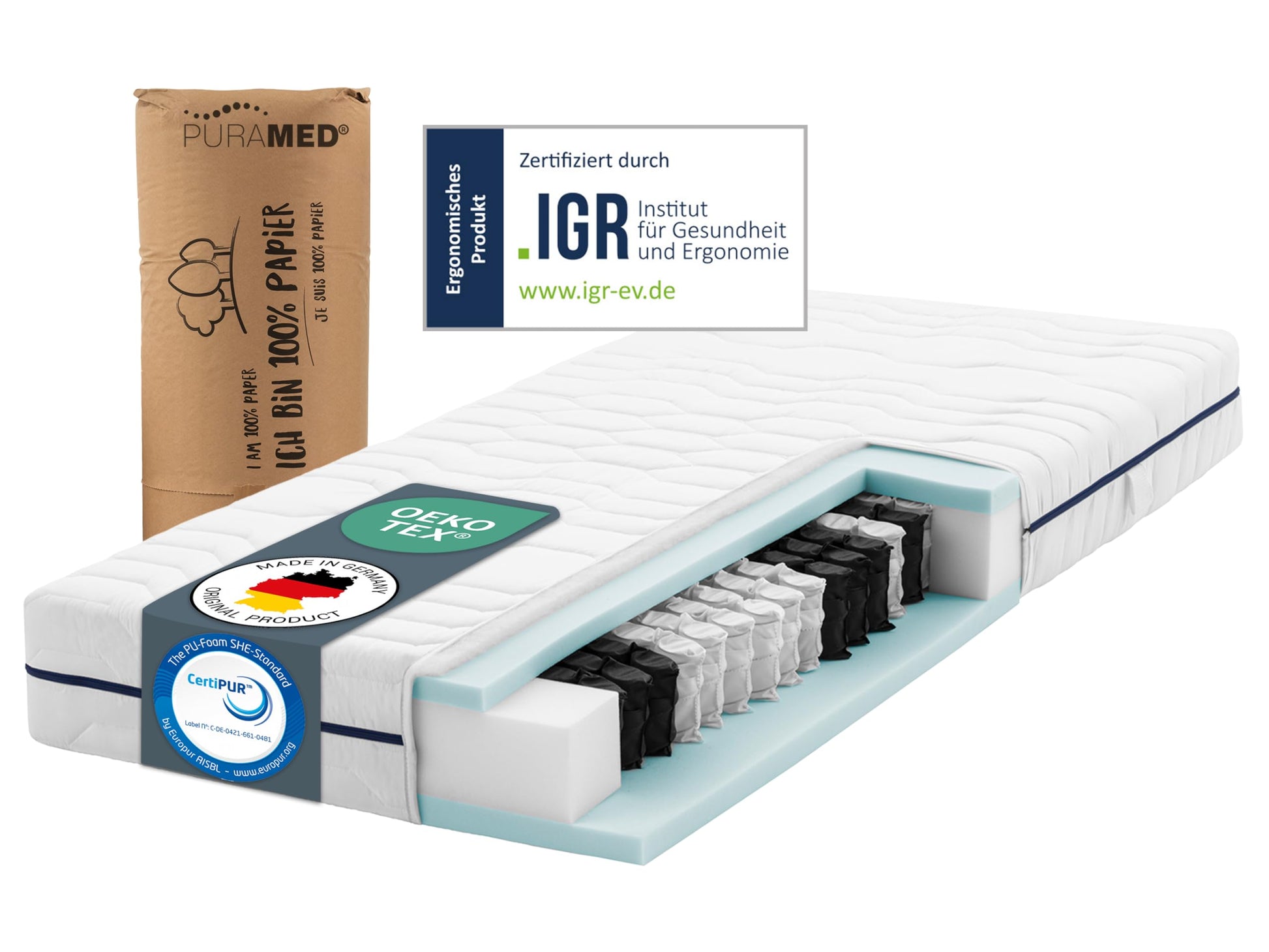 PURAMED 7-Zonen Taschenfederkernmatratze 90x200 cm H4