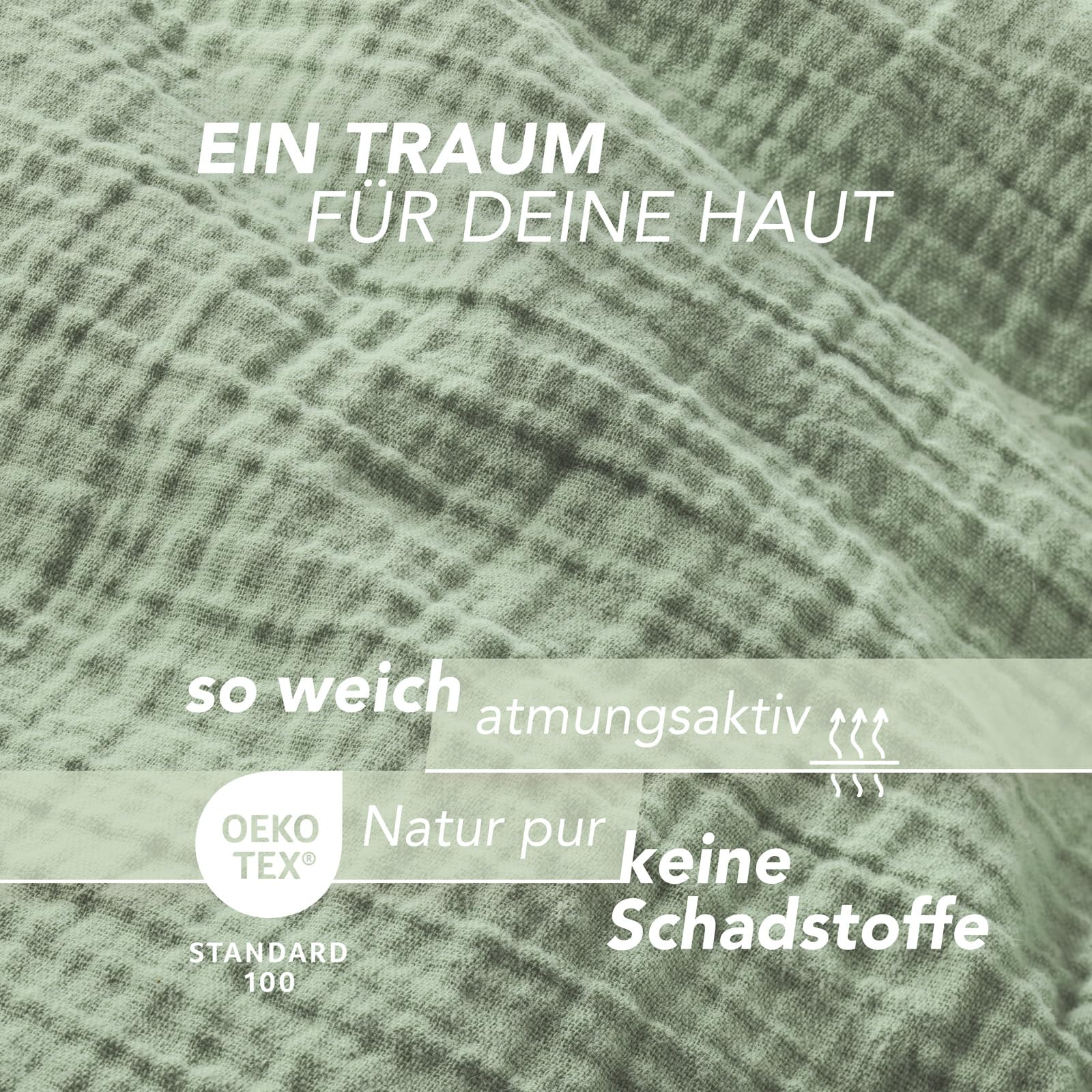 - Reiner Baumwoll-Musselin: Aus feinen, hautfreundlichen und natürlichen Baumwollfasern gefertigt.