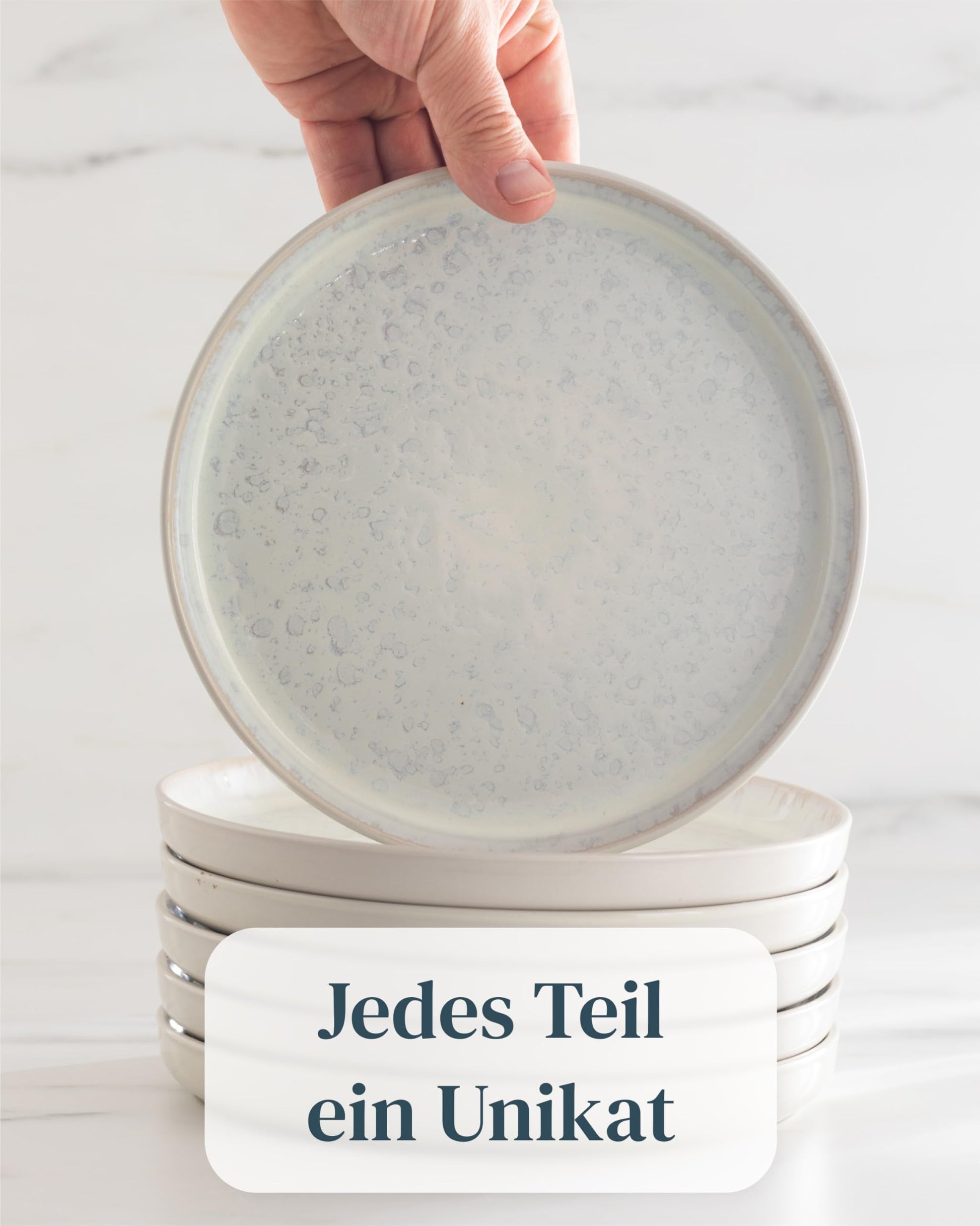 Ja, das Set ist aus massivem, hochwertigem Steingut gefertigt. Die sorgfältig gebrannte und glasierte Oberfläche ist kratzfest und äusserst robust, was es ideal für den täglichen Gebrauch sowie besondere Anlässe macht und eine lange Lebensdauer garantiert.