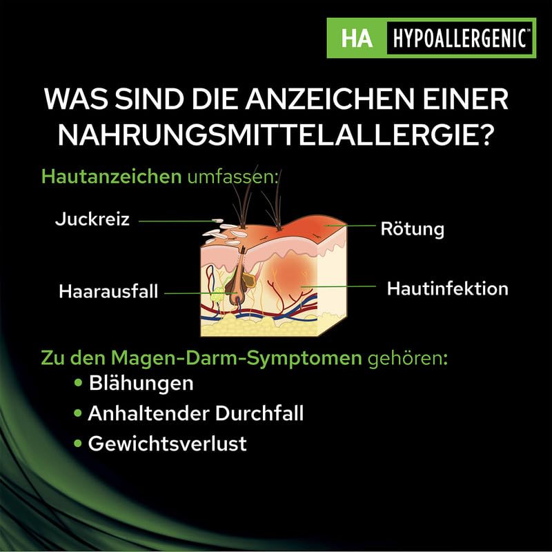 Futtermittelallergien und -intoleranzen äussern sich bei Hunden oft durch Symptome an der Haut oder im Magen-Darm-Trakt. Eine hypoallergene Diät ist ein entscheidender Faktor bei der Behandlung solcher Unverträglichkeiten. Dieses Futter wurde konzipiert, um genau hier anzusetzen.