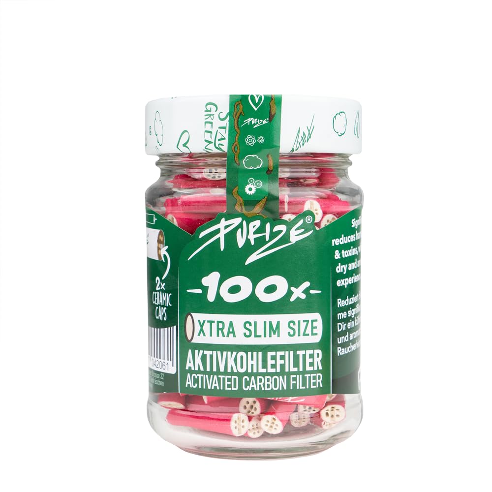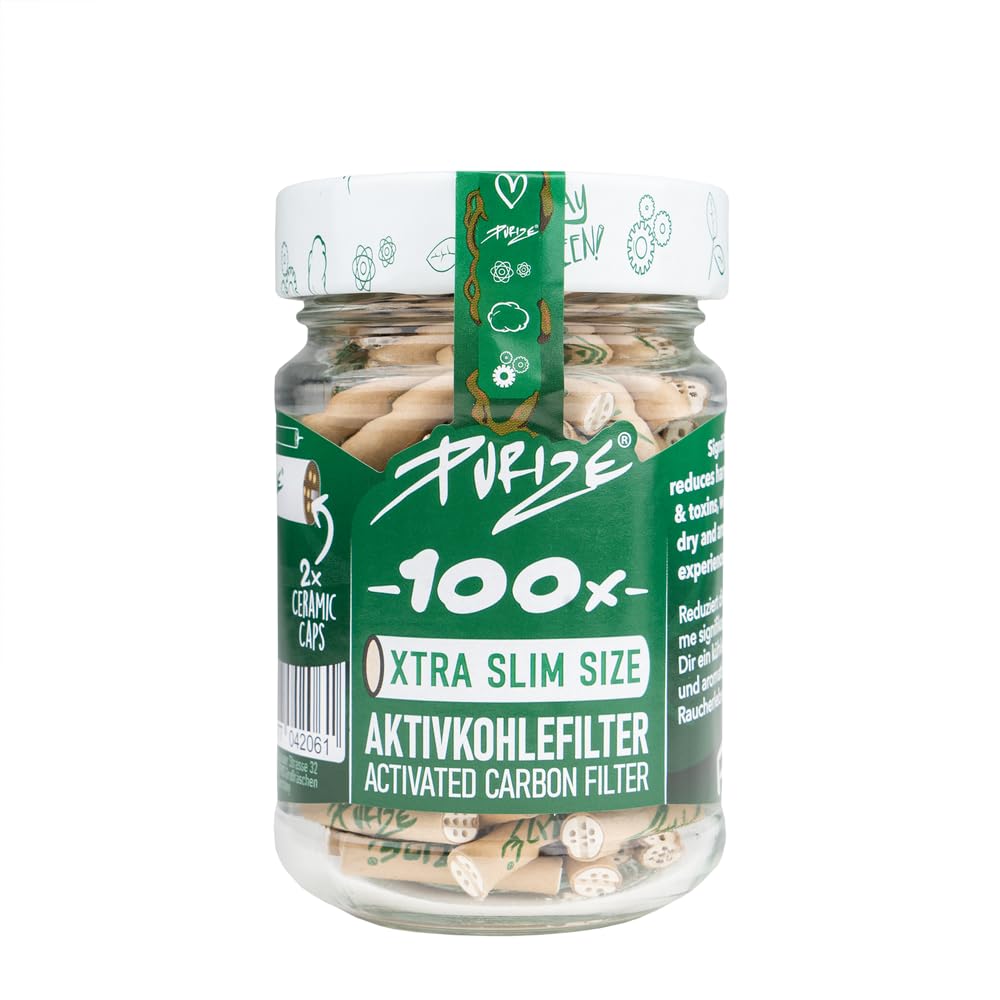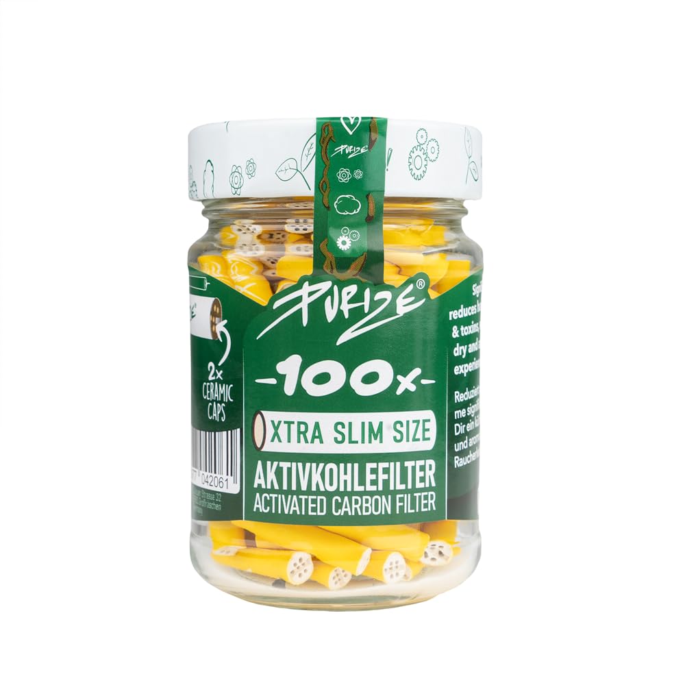 Dieses Bundle versorgt Sie mit insgesamt 500 PURIZE® XTRA Slim Size Aktivkohlefiltern. Diese sind praktisch verpackt in fünf robusten und wiederverwendbaren Gläsern, die jeweils 100 Filter enthalten und diese optimal vor Feuchtigkeit und anderen äusseren Einflüssen schützen.