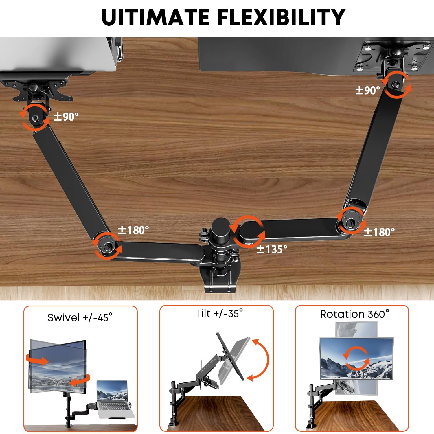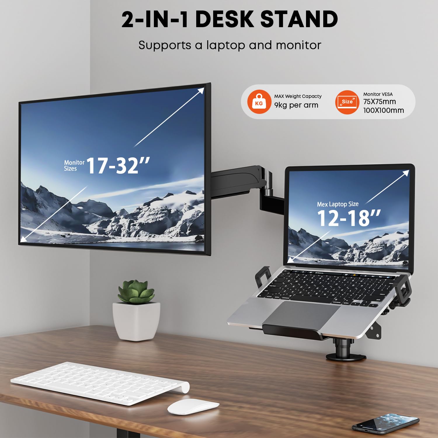- Universelle Kompatibilität: Geeignet für Monitore von 17 bis 32 Zoll und Laptops von 12 bis 18 Zoll. Jeder Arm trägt ein Gewicht von bis zu 9 kg.
