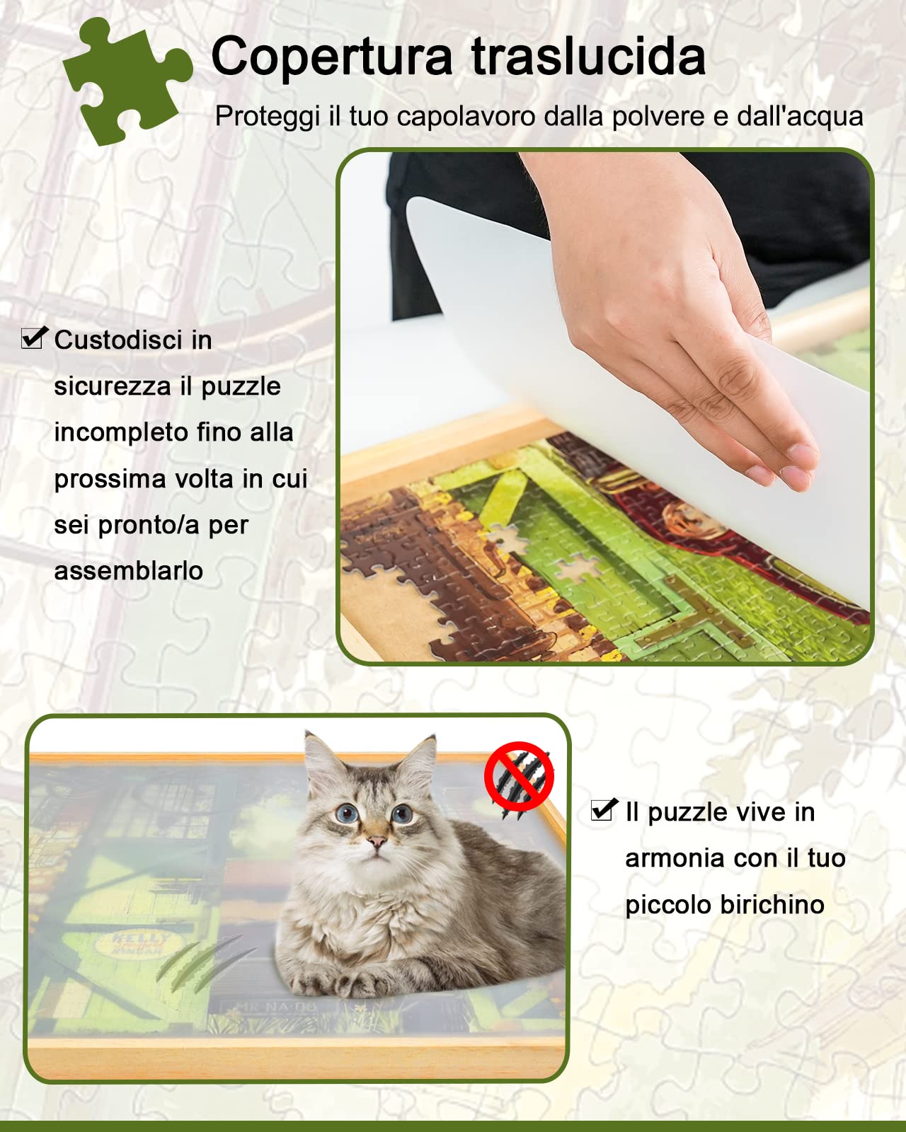 Ob als entspannender Zeitvertreib für Erwachsene, als lehrreiches Spiel zur Förderung der Koordination bei Kindern oder als gemeinsames Familienprojekt – dieses Puzzlebrett bereichert jedes Zuhause. Es ist das ideale Geburtstags- oder Weihnachtsgeschenk für alle Puzzle-Liebhaberinnen und -Liebhaber.