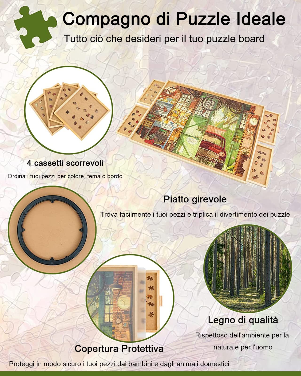 Profi drehbares Puzzlebrett 1500 Teile mit Schubladen & Abdeckung