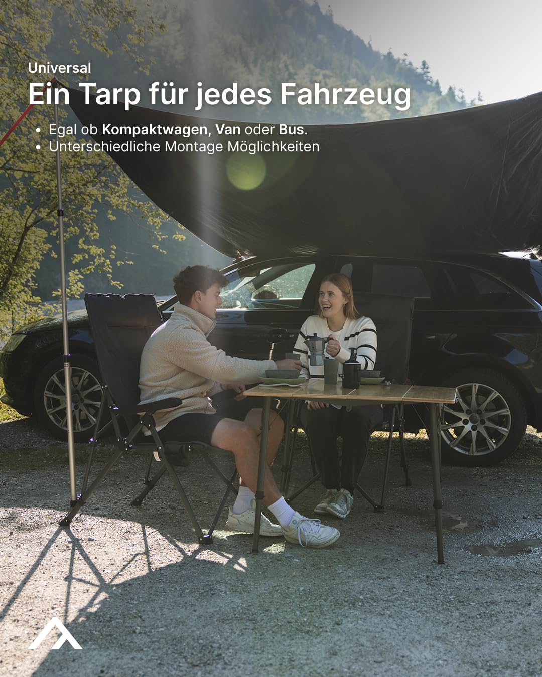 Schaffen Sie sich im Handumdrehen einen geschützten Aussenbereich direkt an Ihrem Fahrzeug. Dieses universelle Sonnensegel ist der ideale Begleiter für Campingausflüge, Roadtrips und alle Abenteuer unter freiem Himmel, bei denen Sie spontan Schatten oder Schutz vor Regen benötigen.