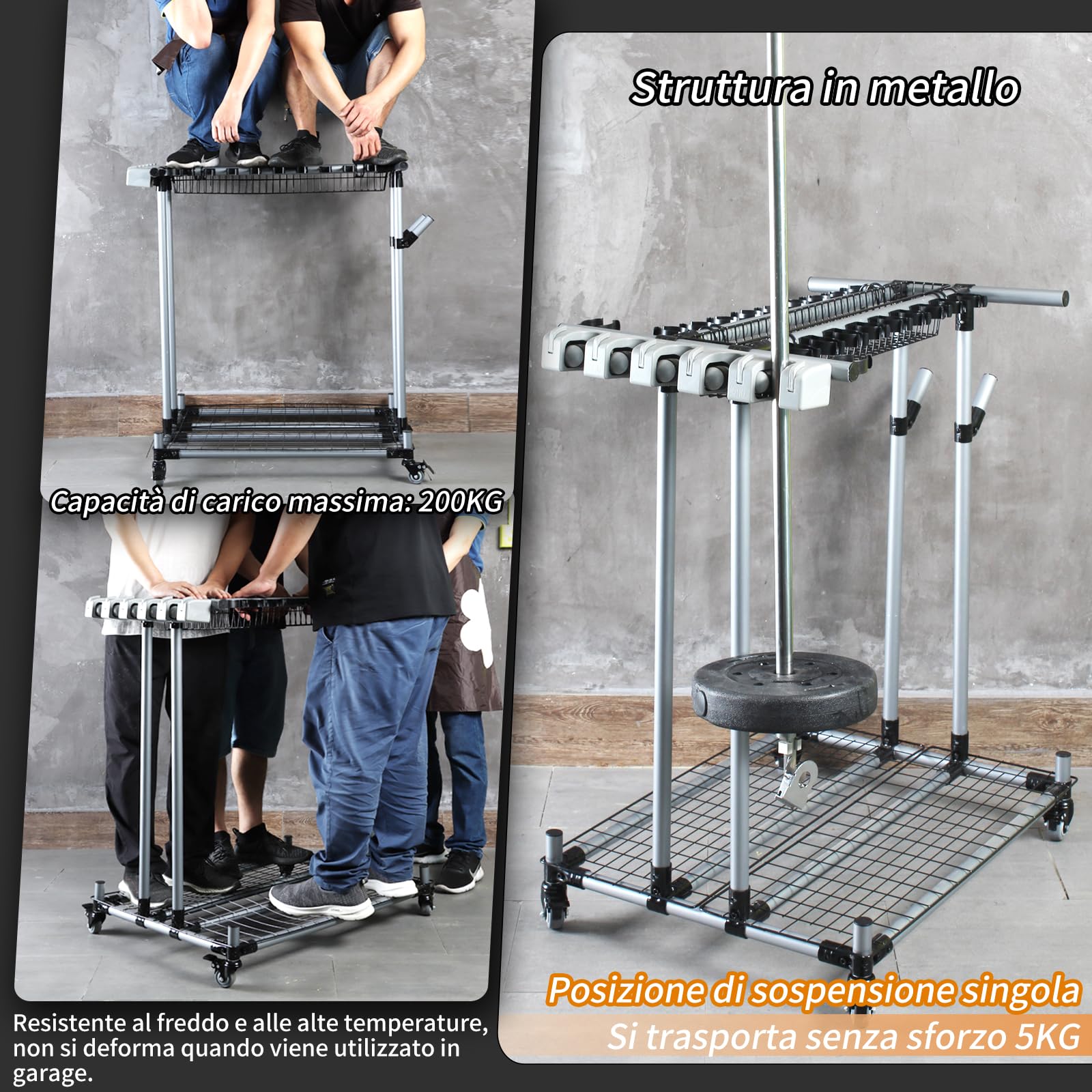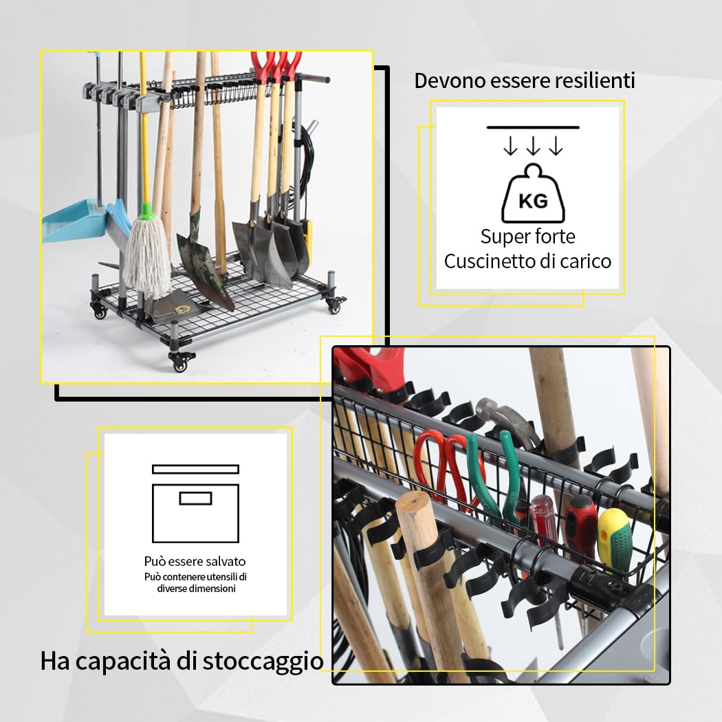 Bringen Sie Ordnung und System in Ihre Garage oder Ihren Geräteschuppen. Dieses robuste und mobile Aufbewahrungsregal wurde speziell für die übersichtliche und platzsparende Lagerung Ihrer landwirtschaftlichen Geräte und Gartenwerkzeuge entwickelt.
