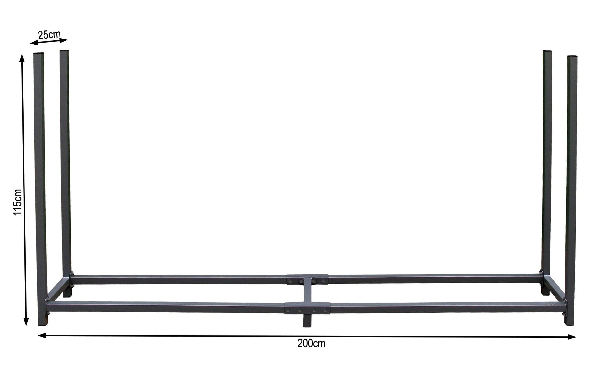 - Abmessungen & Kapazität: Mit den Massen 200 x 25 x 115 cm bietet das Regal ein Fassungsvermögen von 0,8 m³ gestapeltem Holz, was 1,3 Schüttraummetern (SRM) entspricht.
