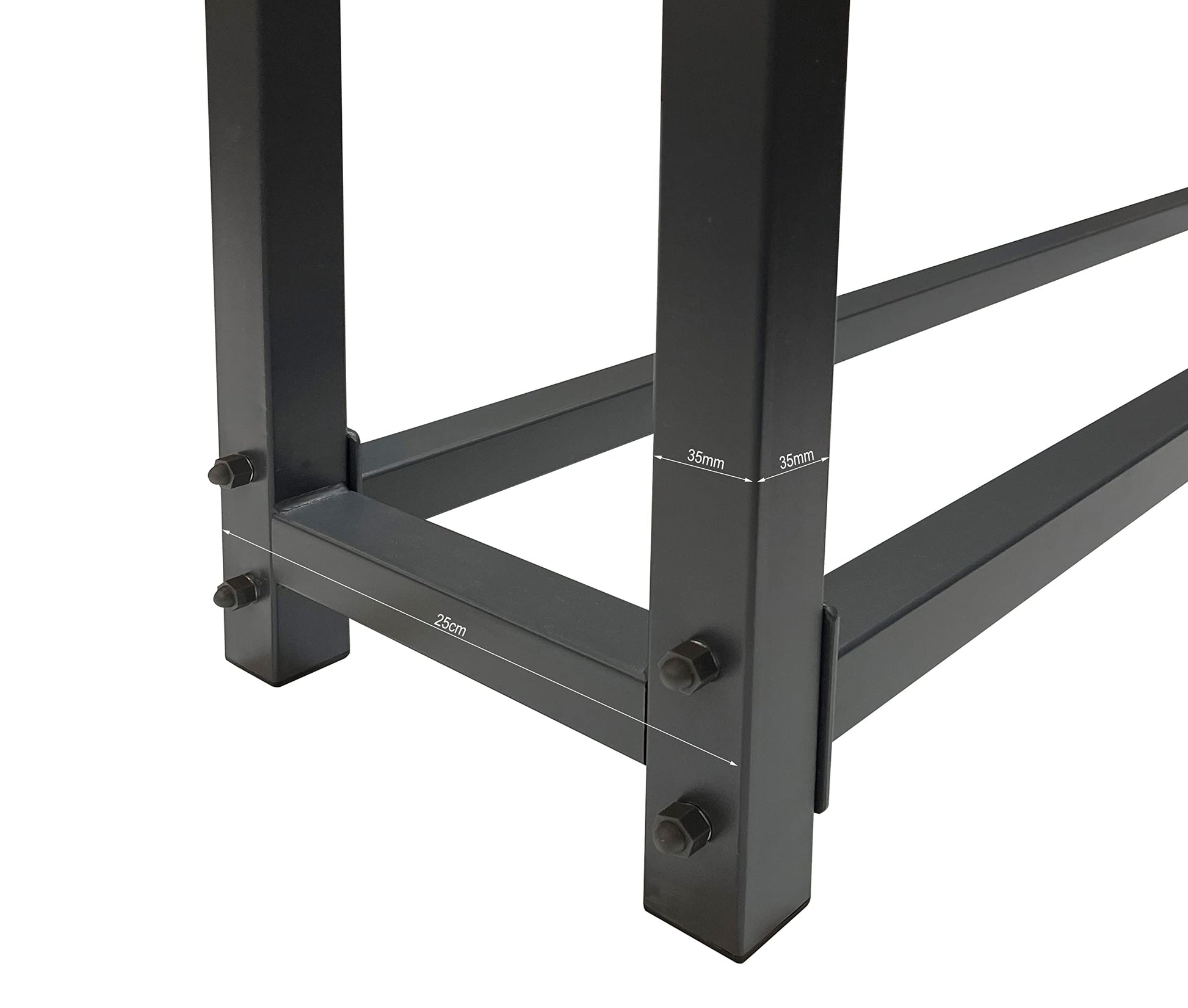 - Stabile Konstruktion: Gefertigt aus langlebigem Stahl, lackiert in einem modernen Anthrazit (RAL7043). Die 35 x 35 mm starken Standbeine garantieren einen kompromisslos festen Stand.