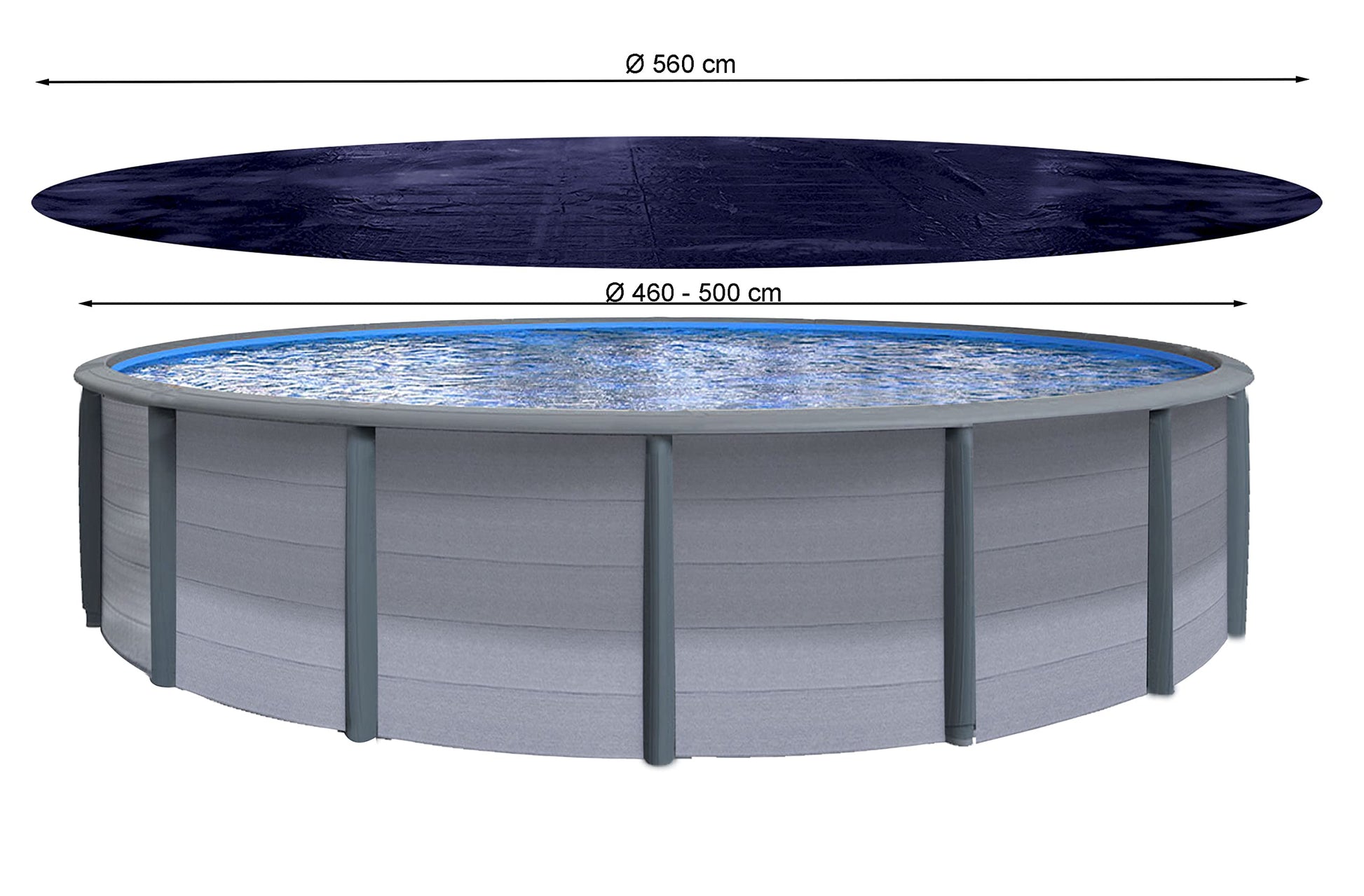 Diese Abdeckplane ist ideal für runde Pools mit einem Durchmesser von 460 cm bis 500 cm. Das grosszügige Planenmass von 560 cm sorgt für einen ausreichenden Überhang, um den Beckenrand komplett und sicher abzudecken und die Plane zu befestigen.