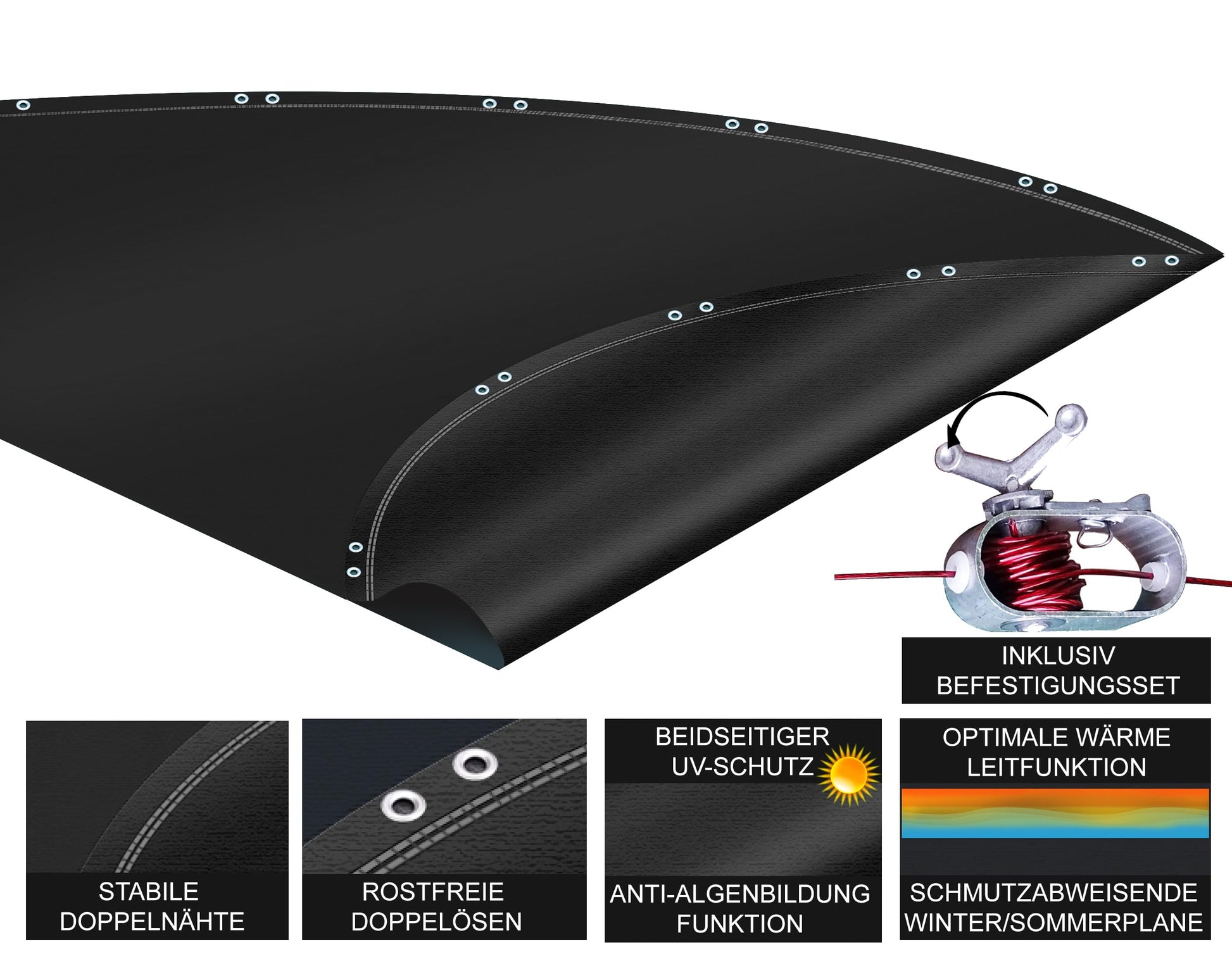 - Doppelfunktion: Eignet sich als Solarplane zur Wassererwärmung und als lichtundurchlässige Winterabdeckung.
