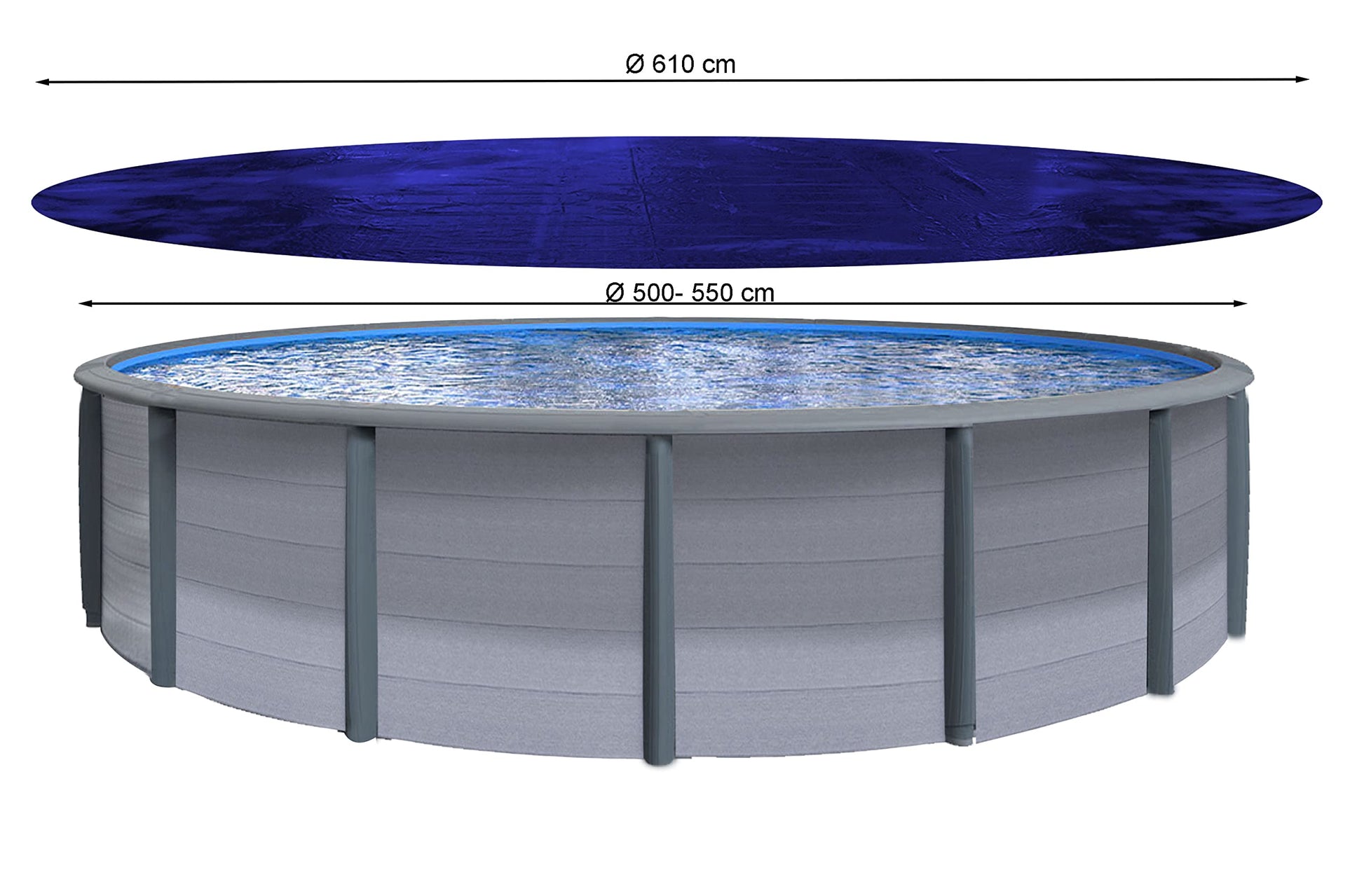 - Passform: Ideal für runde Pools mit einem Durchmesser von 500 bis 550 cm. Das exakte Planenmass beträgt Ø 610 cm.