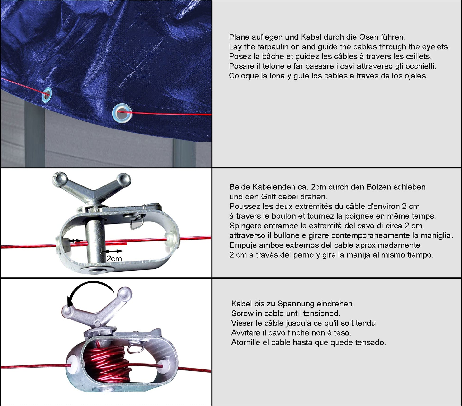 - Material: Gefertigt aus reissfestem, 100% Polyethylen mit einer Materialstärke von 200g/m². Die Plane ist beidseitig beschichtet und mit Gewebe verstärkt für maximale Langlebigkeit.