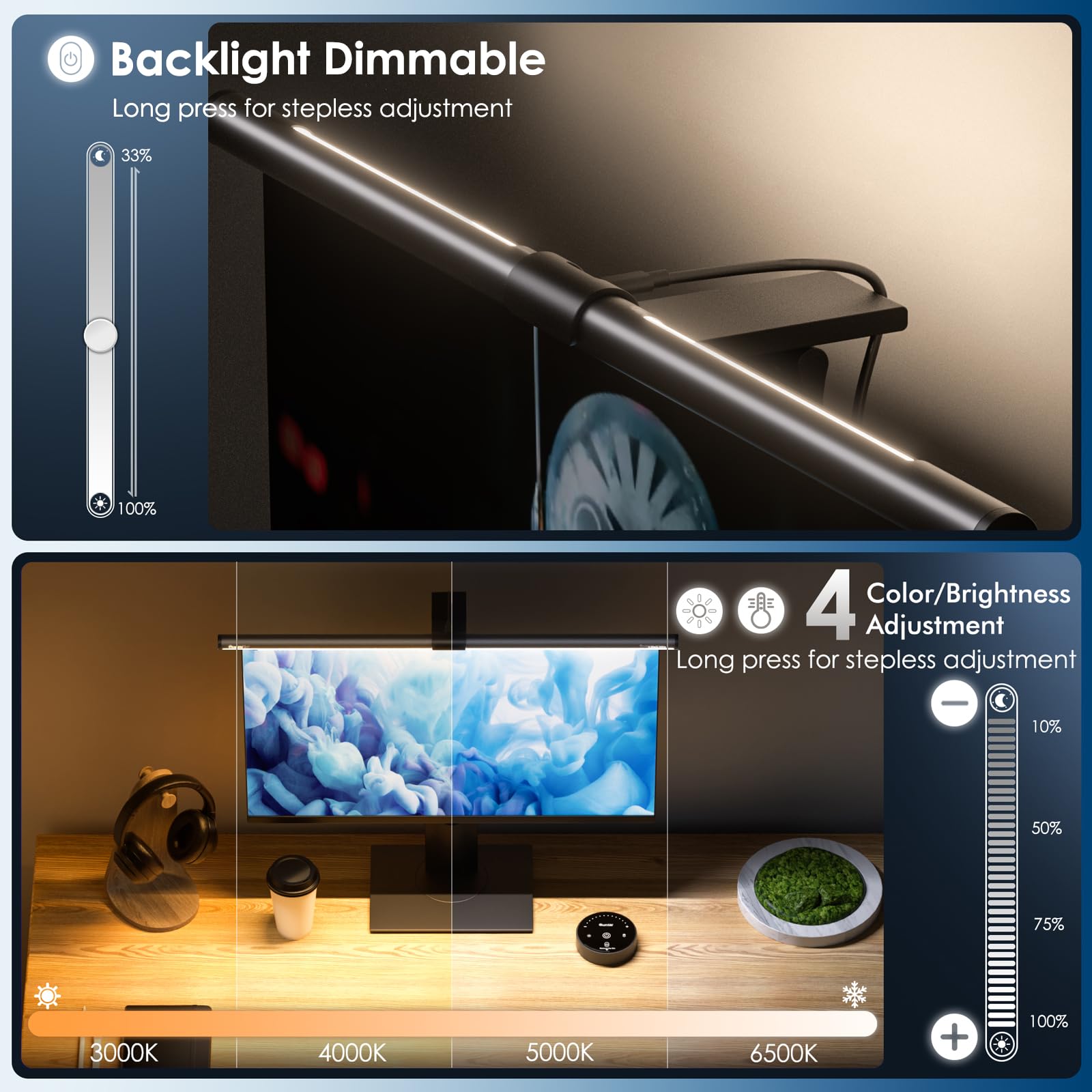 Es bietet eine Komplettlösung: Das fokussierte Frontlicht leuchtet Ihren Arbeitsbereich optimal für konzentriertes Arbeiten aus, während die separate Hintergrundbeleuchtung den harten Kontrast zwischen Bildschirm und Umgebung reduziert. Dies schafft ein angenehmes Ambiente und schont die Augen zusätzlich.