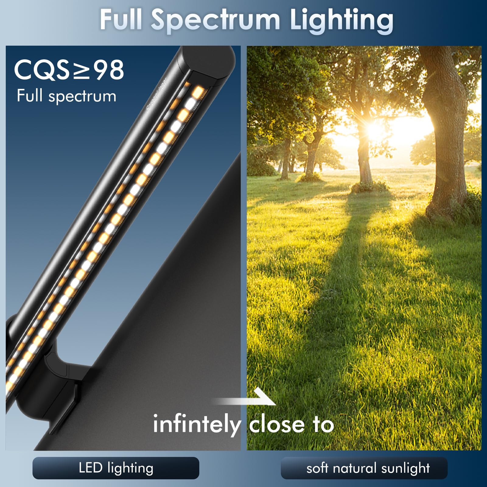 Die Lampe nutzt eine spezielle asymmetrische 45-Grad-Lichtquelle, die gezielt den Schreibtisch beleuchtet, ohne auf dem Monitor zu blenden oder zu reflektieren. Zudem ist das Licht flimmerfrei, reduziert Blaulicht und hat einen hohen Farbwiedergabeindex (CRI 95) für naturgetreue Farben, was die Augenbelastung spürbar minimiert.
