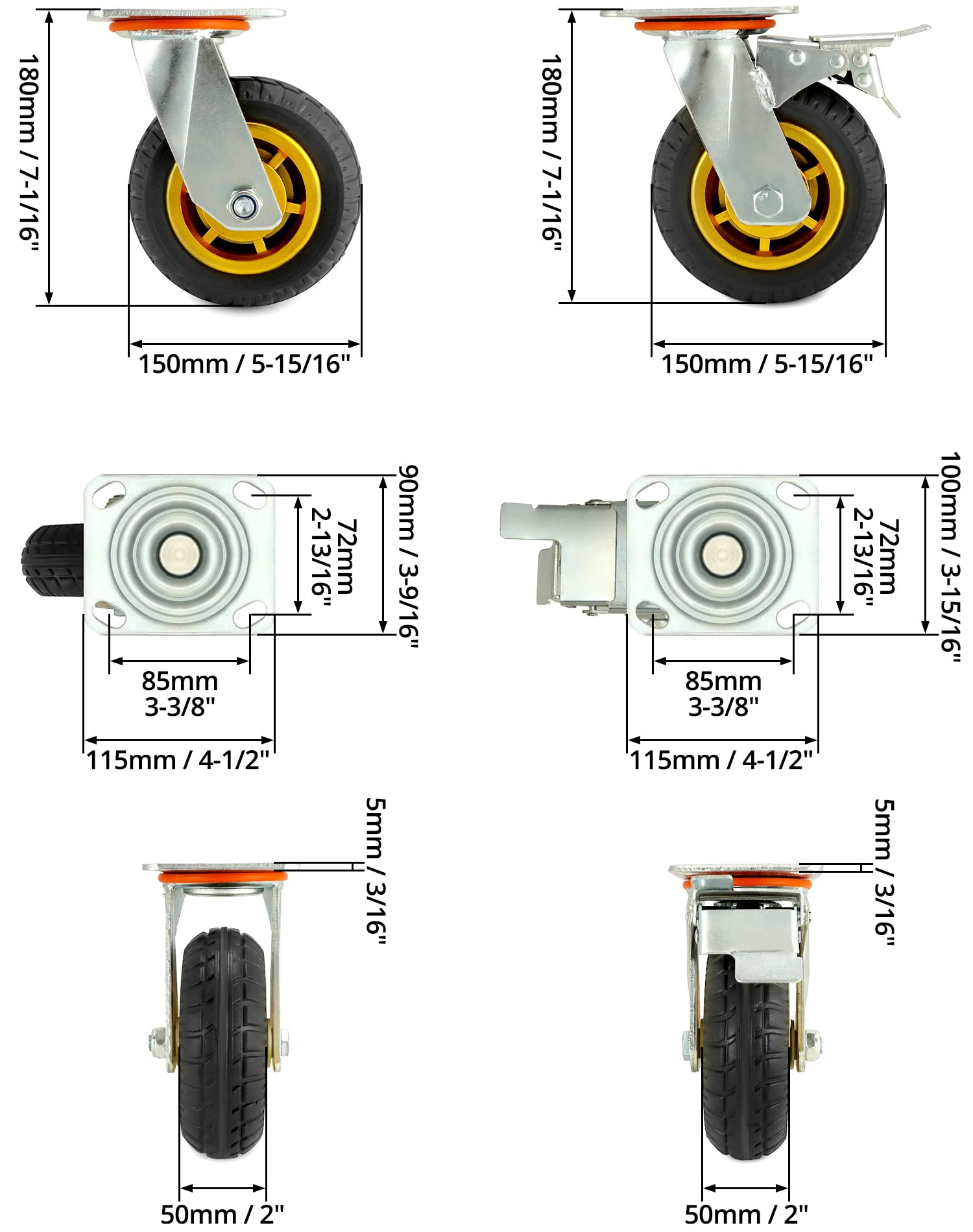 QWORK Schwerlastrollen 150mm Set - 2 Lenkrollen, 2 Bremsrollen