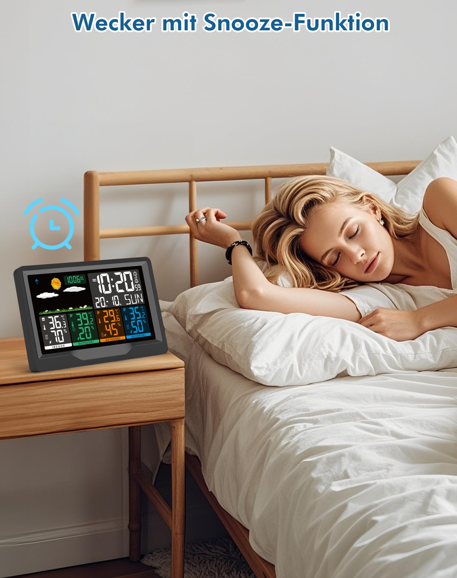 Behalten Sie das Klima in verschiedenen Räumen wie dem Keller, dem Kinderzimmer oder dem Wintergarten sowie im Aussenbereich stets im Auge. Mit den präzisen Messwerten und der Wettertendenzanzeige können Sie Ihren Alltag besser planen – sei es die Wahl der richtigen Kleidung, die Organisation von Gartenarbeit oder die Vorbereitung auf bevorstehende Wetteränderungen. Die integrierte Weckfunktion macht die Station zusätzlich zu einem nützlichen Alltagshelfer auf dem Nachttisch.
