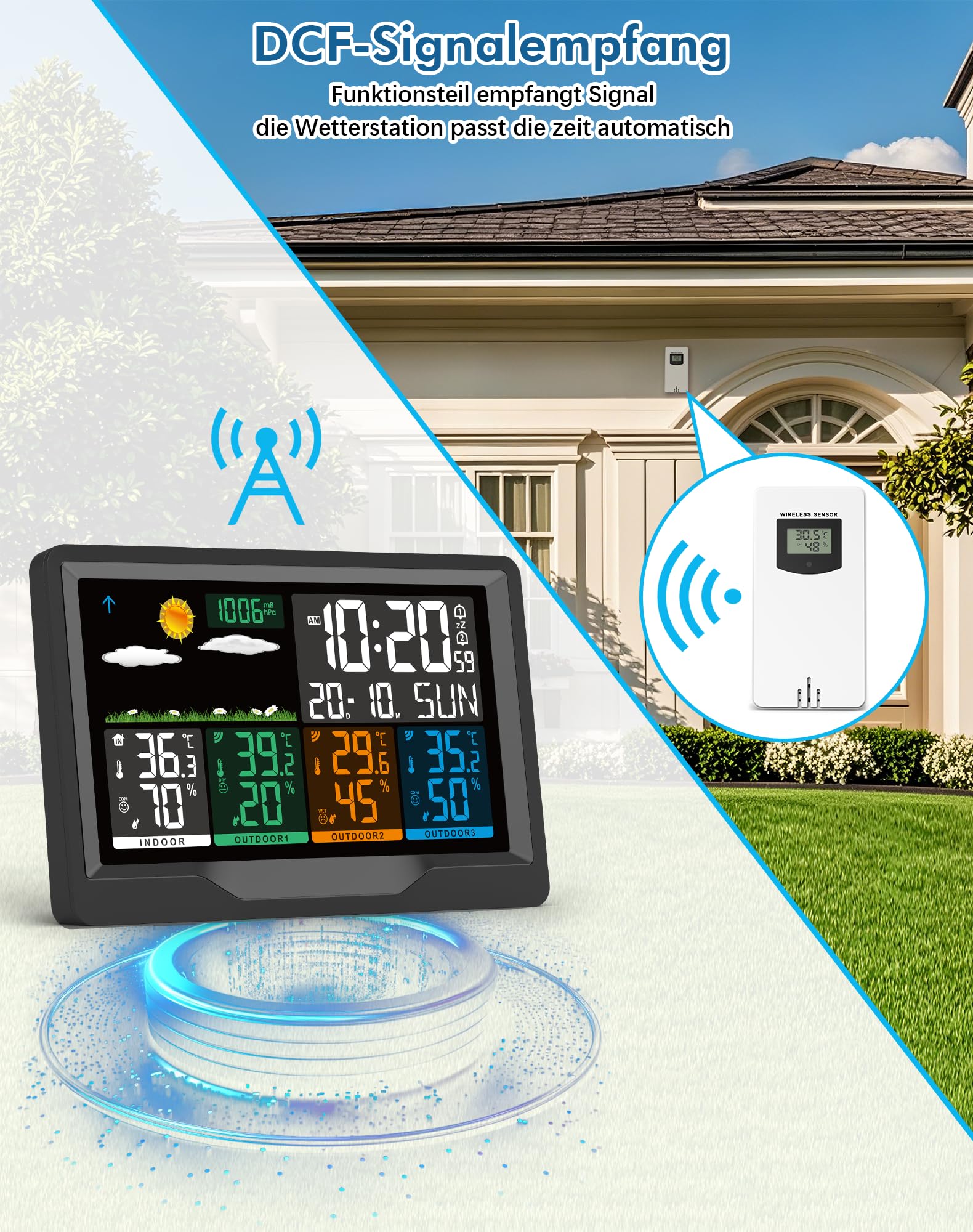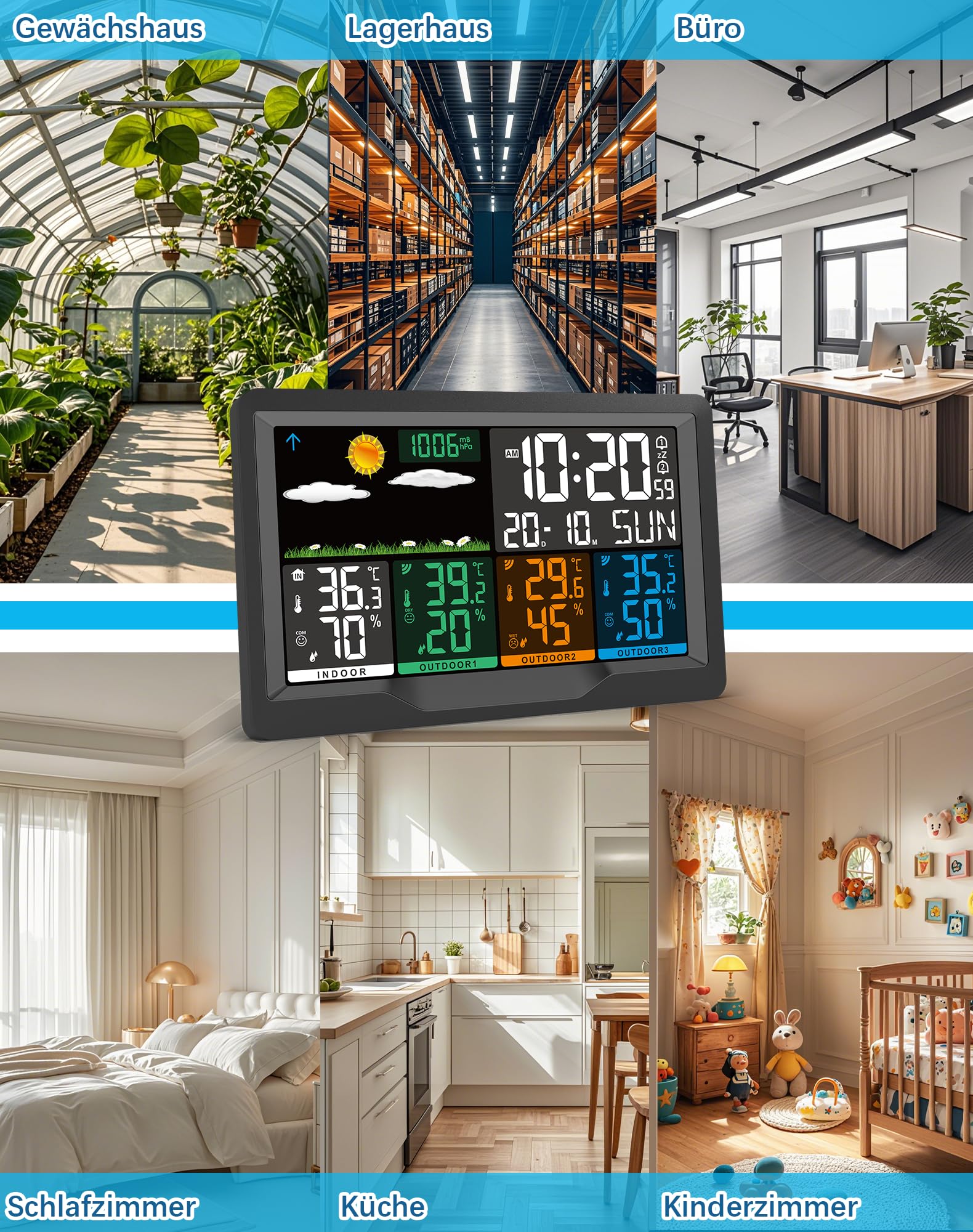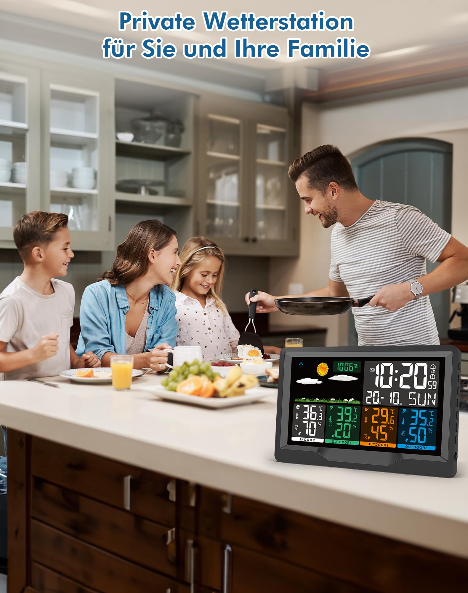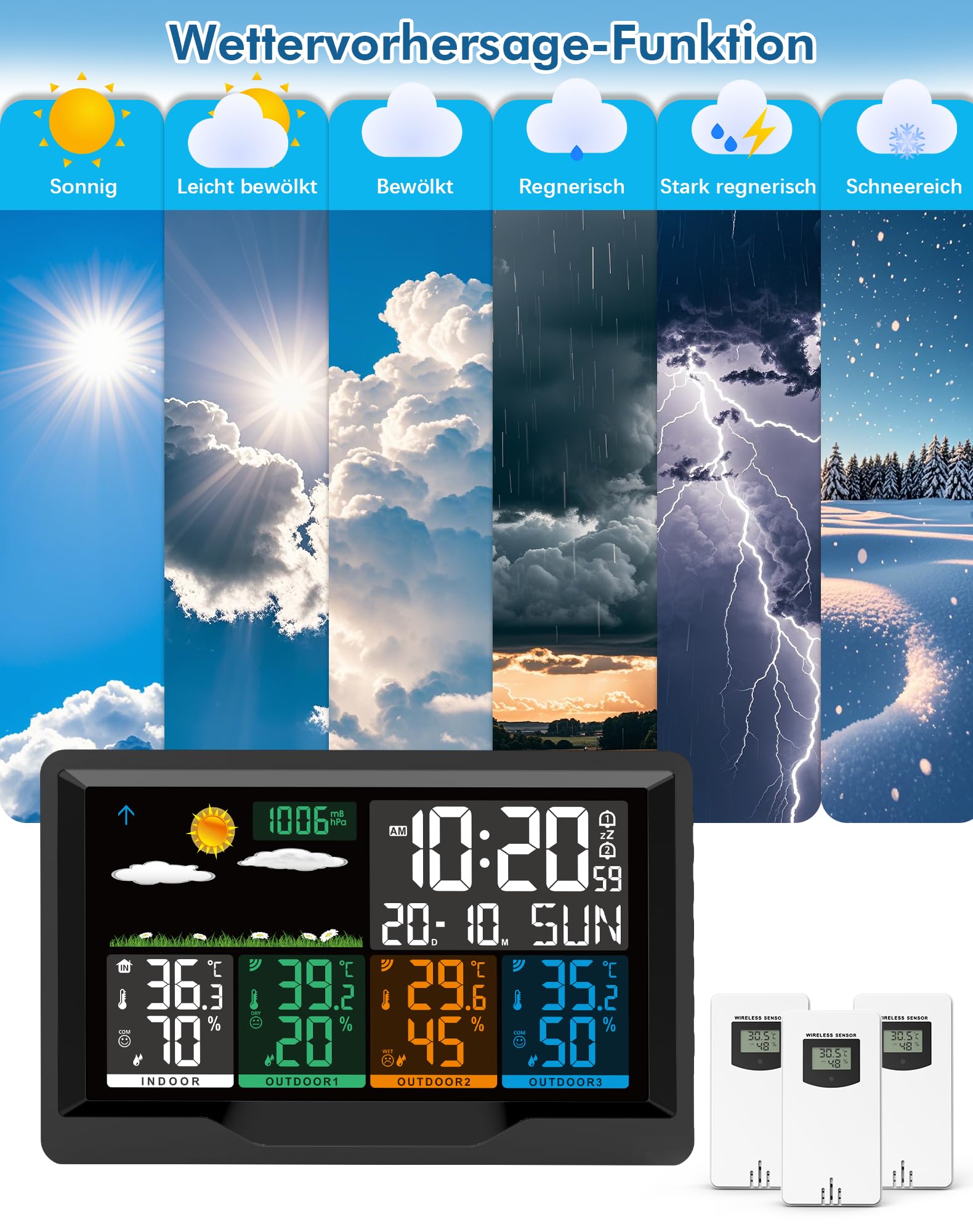 Diese multifunktionale Wetterstation ist der ideale Partner für alle, die genaue und umfassende Wetterdaten von mehreren Orten schätzen.