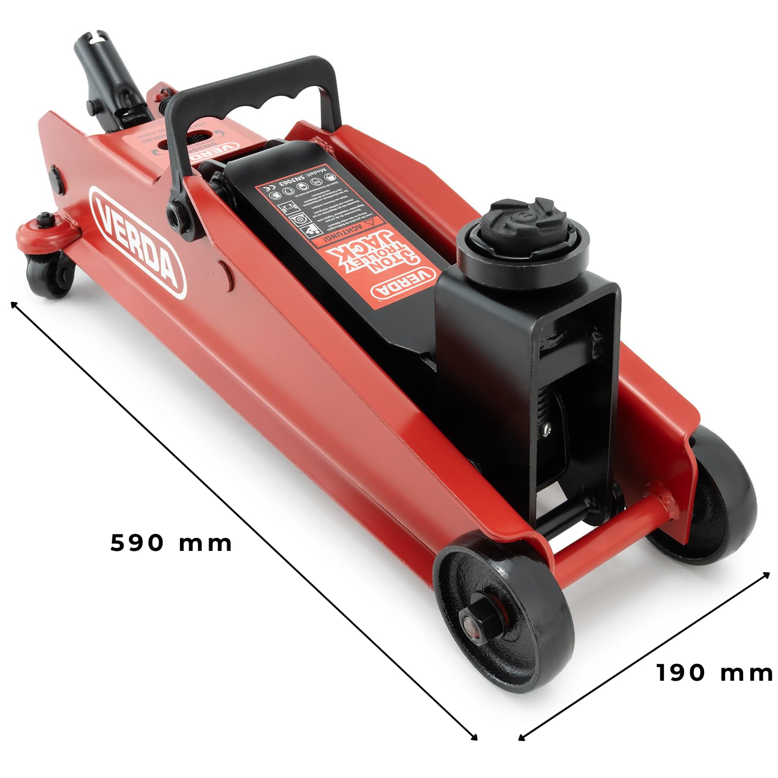 Dank seiner beeindruckenden Hebekapazität von 3000 kg ist dieser Wagenheber ein zuverlässiger Partner für Profis und ambitionierte Heimwerker. Die solide Konstruktion mit einer breiten Basis sorgt für einen sicheren Stand ohne Wackeln oder Verrutschen und garantiert so eine lange Lebensdauer.