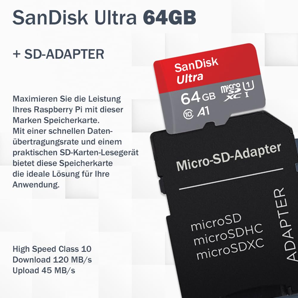 - Schneller Speicher: Eine 64 GB Micro-SD-Karte (UHS-I, Class 10) mit bis zu 100 MB/s Lesegeschwindigkeit, inklusive praktischem USB-Kartenleser.