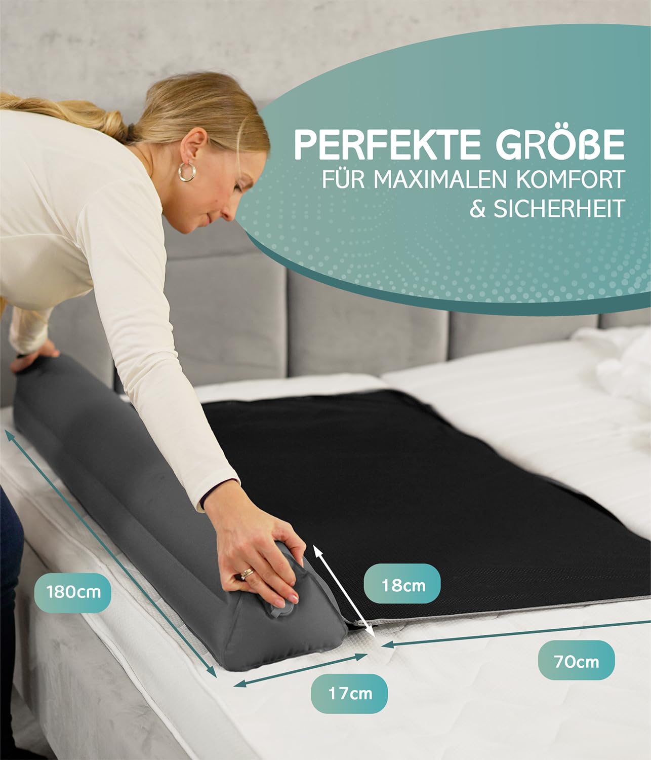 Dieser aufblasbare Rausfallschutz von RAWVEL® bietet Ihrem Kind Geborgenheit und schützt es zuverlässig vor dem Herausfallen aus dem Bett – eine sichere und praktische Lösung für zuhause und auf Reisen.