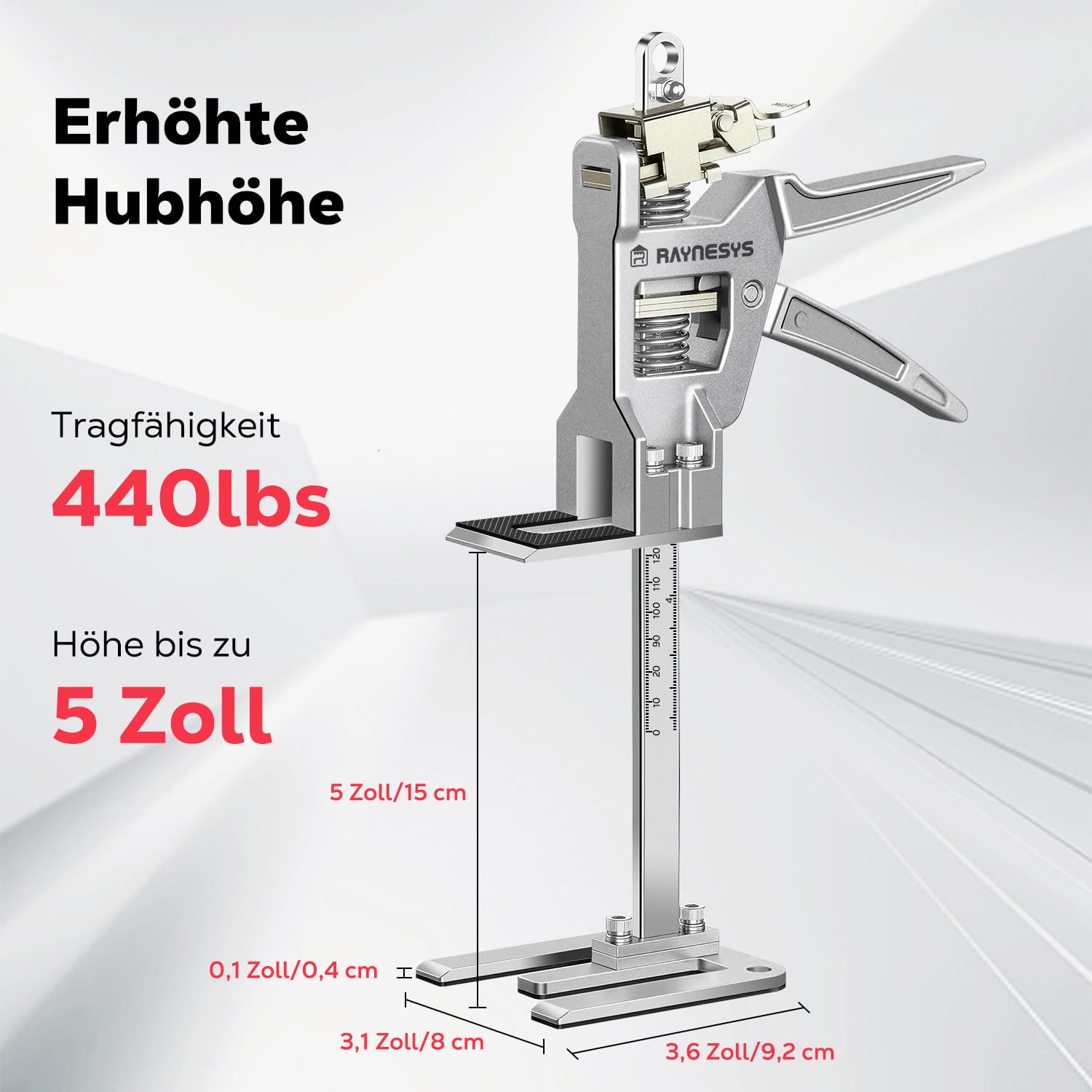 - Einstellbarer Hubbereich: 0 – 14.5 cm (0 – 5.7 Zoll)