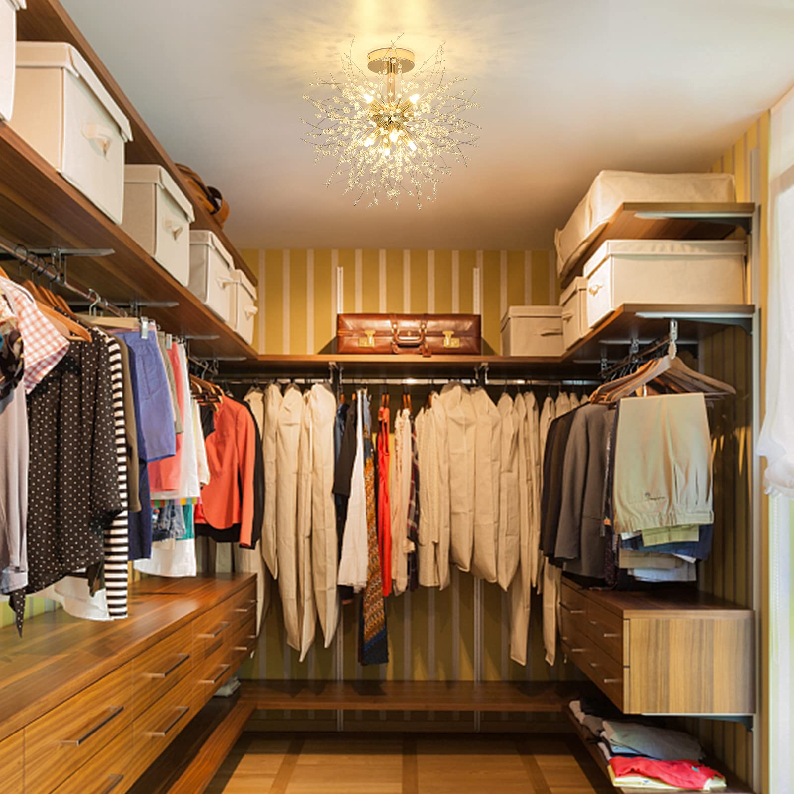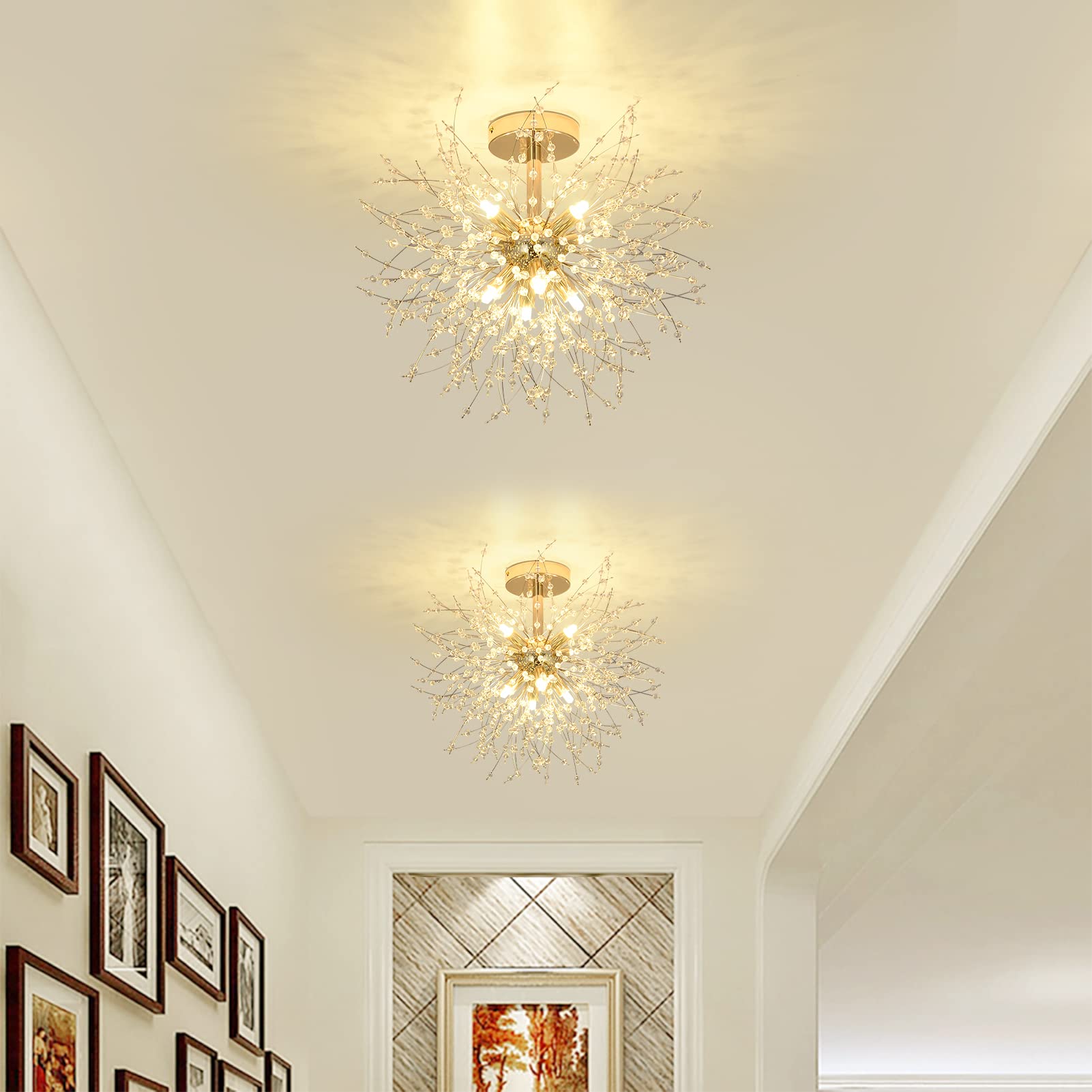 Verleihen Sie Ihrem Zuhause einen Hauch von Glamour mit dieser eleganten Kristall-Deckenleuchte. Ihr funkelndes Design, das an ein Feuerwerk erinnert, schafft in jedem Raum eine einladende und stilvolle Atmosphäre und wird zum garantierten Blickfang.