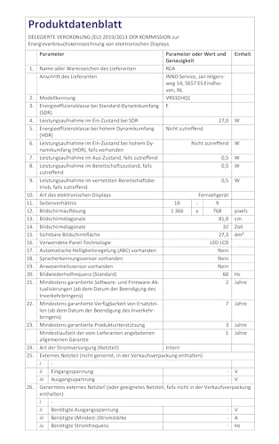 - Bildschirm: 80 cm (32 Zoll) Diagonale mit HD Ready Auflösung (1366 x 768 Pixel) und 50/60 Hz Bildwiederholrate.