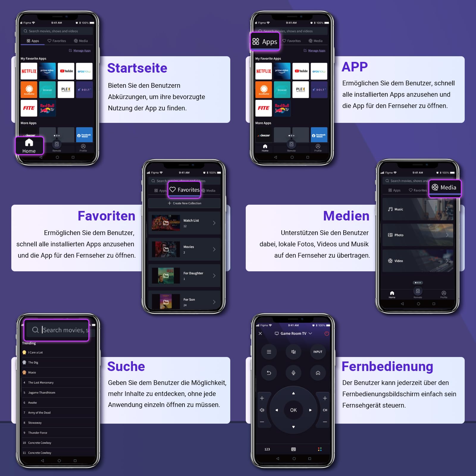 Ja, das ist möglich. Über die dazugehörige App können Sie Ihr Smartphone via WLAN als Fernbedienung nutzen, um Inhalte zu suchen oder den Fernseher zu steuern. Die Funktion zum Teilen des Bildschirms (Screen Sharing) erlaubt es Ihnen zudem, Fotos oder Videos von Ihrem Mobilgerät direkt auf dem Fernseher anzuzeigen.