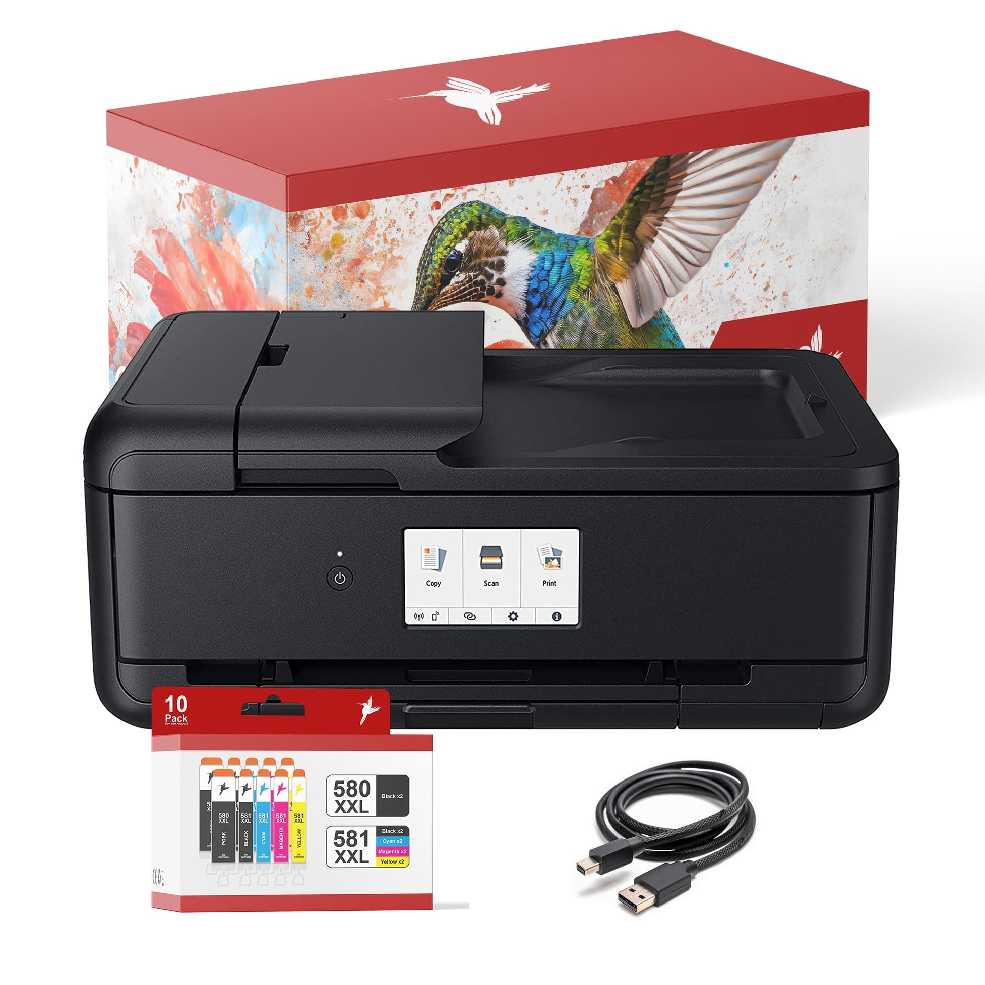 Dieses Bundle enthält den A3-Multifunktionsdrucker Canon PIXMA TS9550a sowie einen grosszügigen Vorrat von 10 kompatiblen XXL-Druckerpatronen von realink (Ersatz für PGI-580/CLI-581). Der Drucker ist für Ihre Bequemlichkeit bereits mit den Patronen ausgestattet und somit sofort einsatzbereit.
