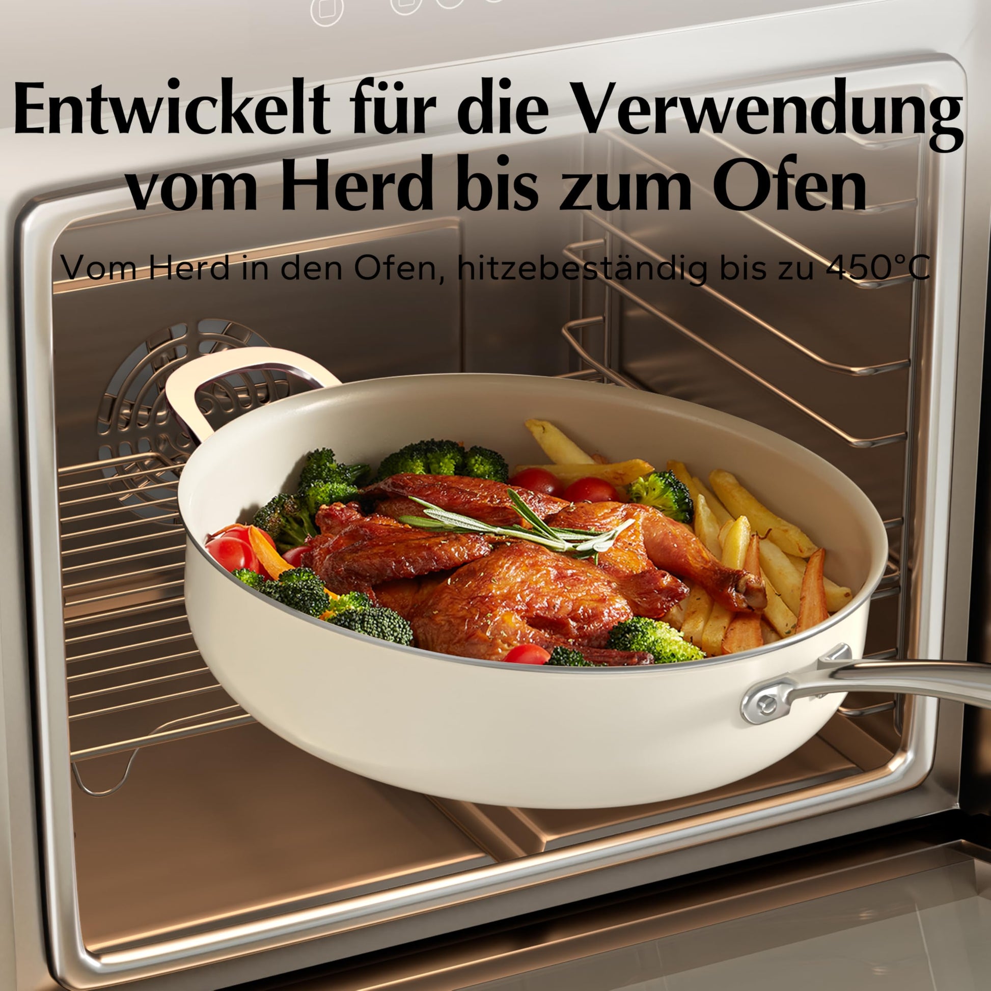 - Praktische Handhabung: Die Pfanne ist backofen- und spülmaschinenfest.