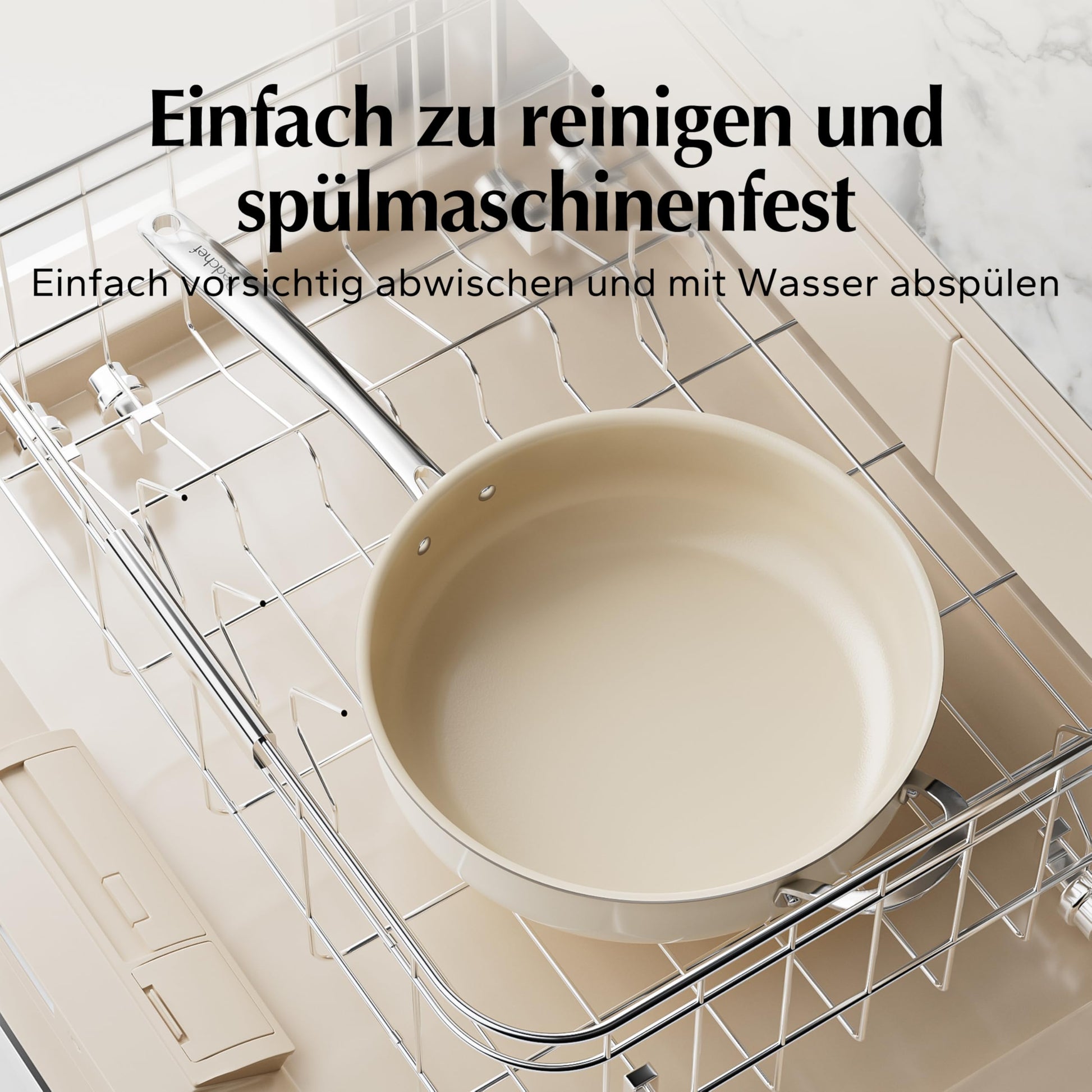 Die glatte Keramikoberfläche verhindert zuverlässig das Anhaften von Speisen und macht die Reinigung zum Kinderspiel. Die Beschichtung ist zudem äusserst kratzfest und langlebig. Für maximalen Komfort kann die Pfanne einfach in der Spülmaschine gereinigt werden.