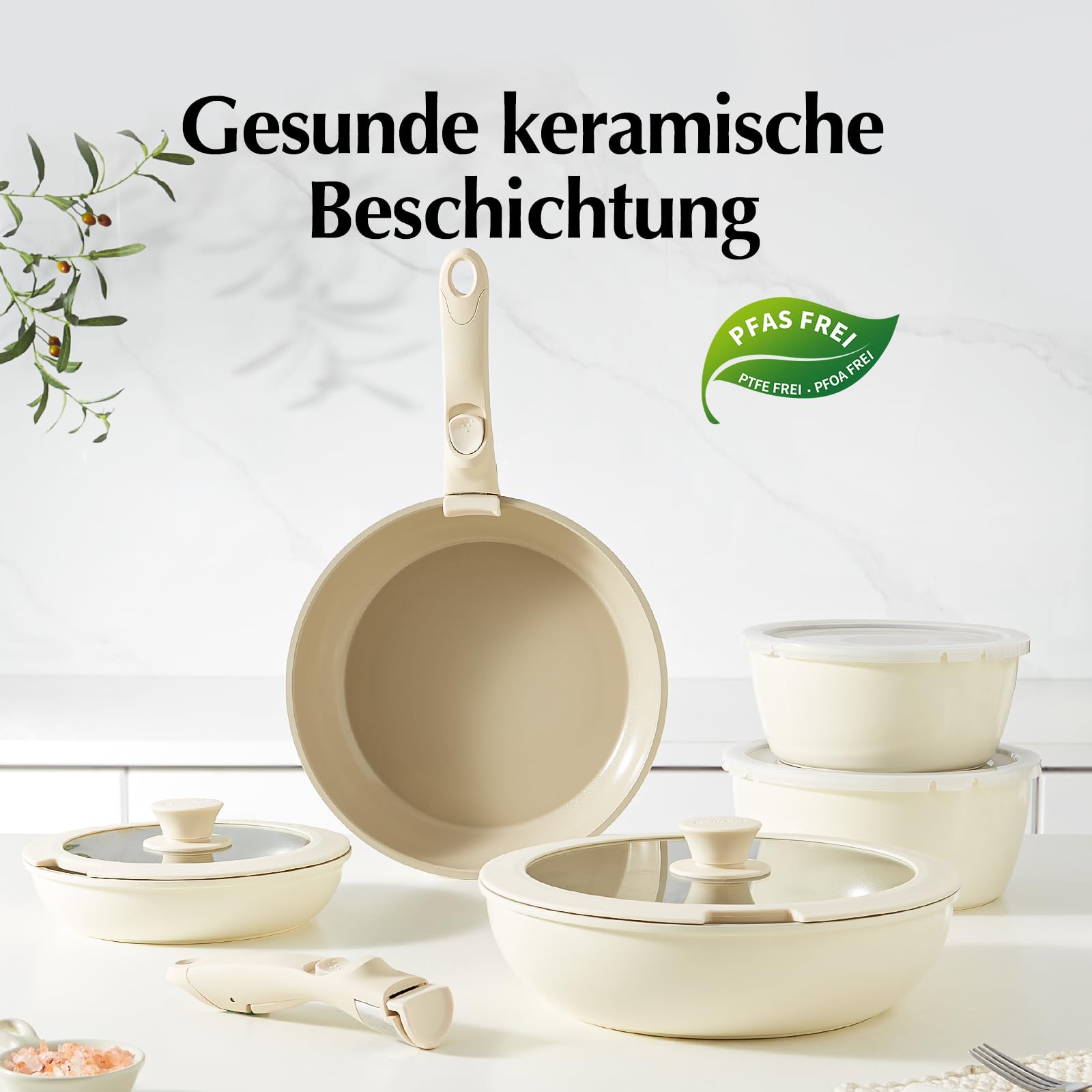 Redchef Kochgeschirr-Set 16-tlg. – Antihaft Keramik, Abnehmbare Griffe