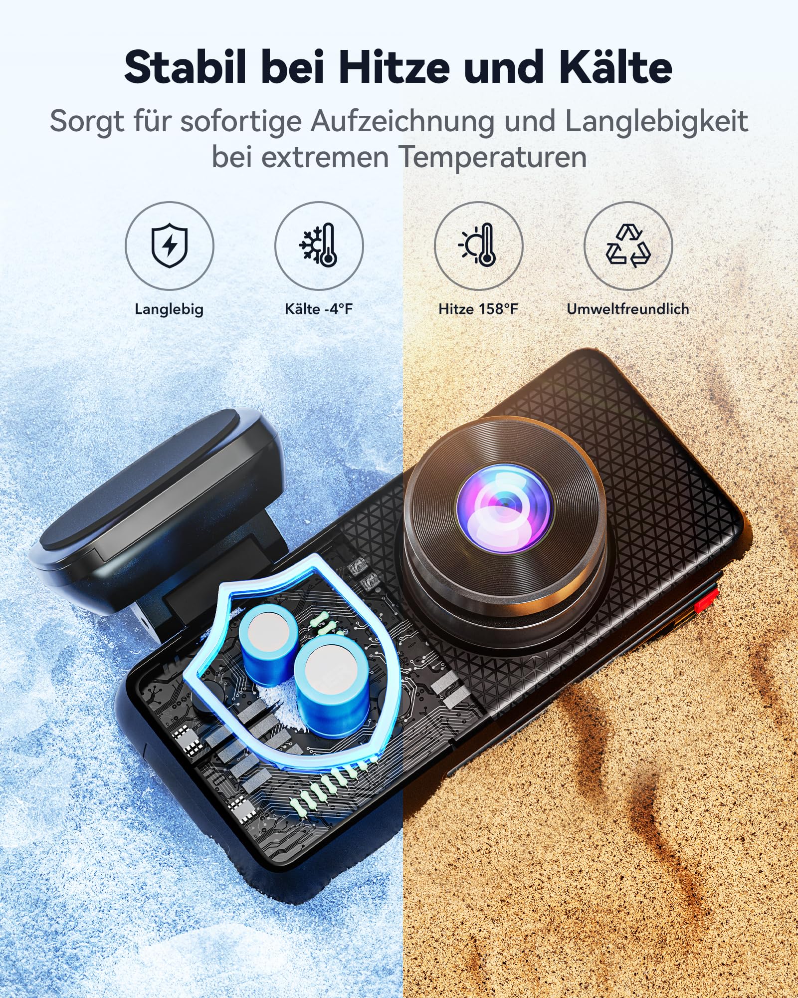 - Zuverlässiger Superkondensator: Anstelle eines herkömmlichen Akkus sorgt ein Superkondensator für maximale Sicherheit und Langlebigkeit, selbst bei extremen Temperaturen im Sommer und Winter.