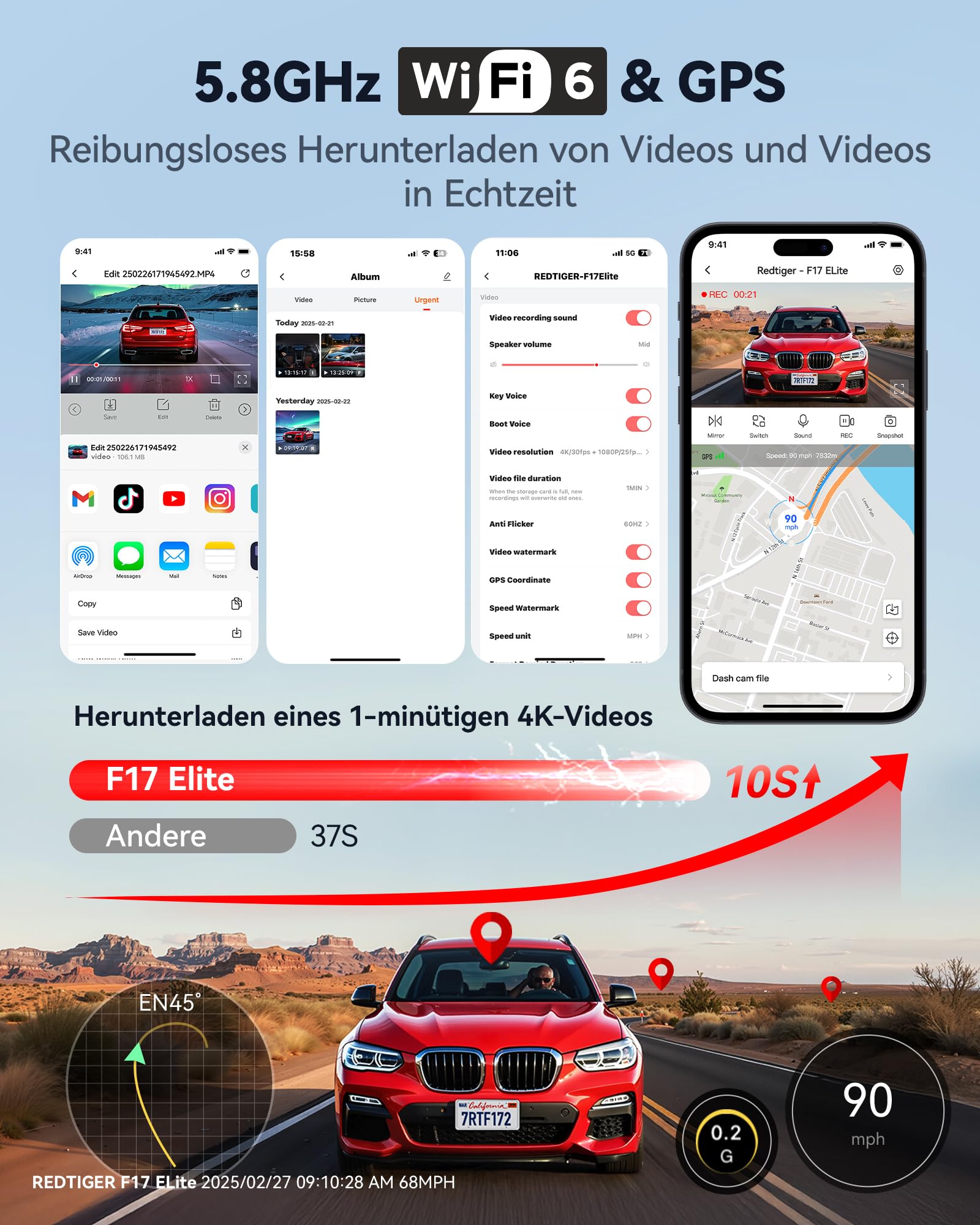 Die REDTIGER F17 Elite ist eine umfassende 3-Kanal-Dashcam, die entwickelt wurde, um jede Fahrt und jeden Moment um Ihr Fahrzeug in beeindruckender Qualität lückenlos zu dokumentieren.