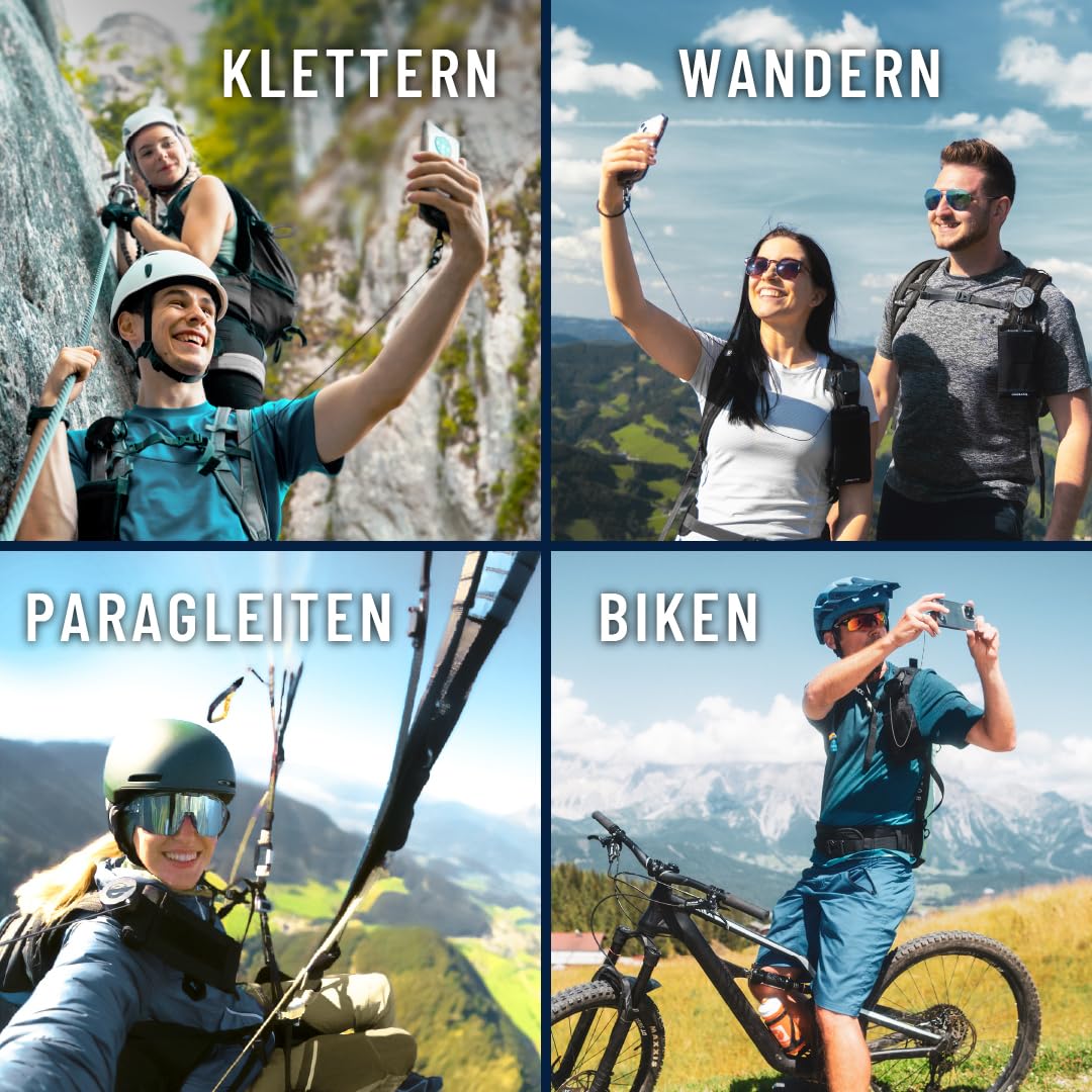 Der grösste Vorteil ist, dass Ihr Smartphone immer absolut sicher und gleichzeitig sofort griffbereit ist. Sie verpassen keinen Fotomoment mehr, weil das Handy direkt am Rucksackgurt positioniert ist, und das intelligente Sicherungsseil verhindert zuverlässig ein Herunterfallen im Gelände.