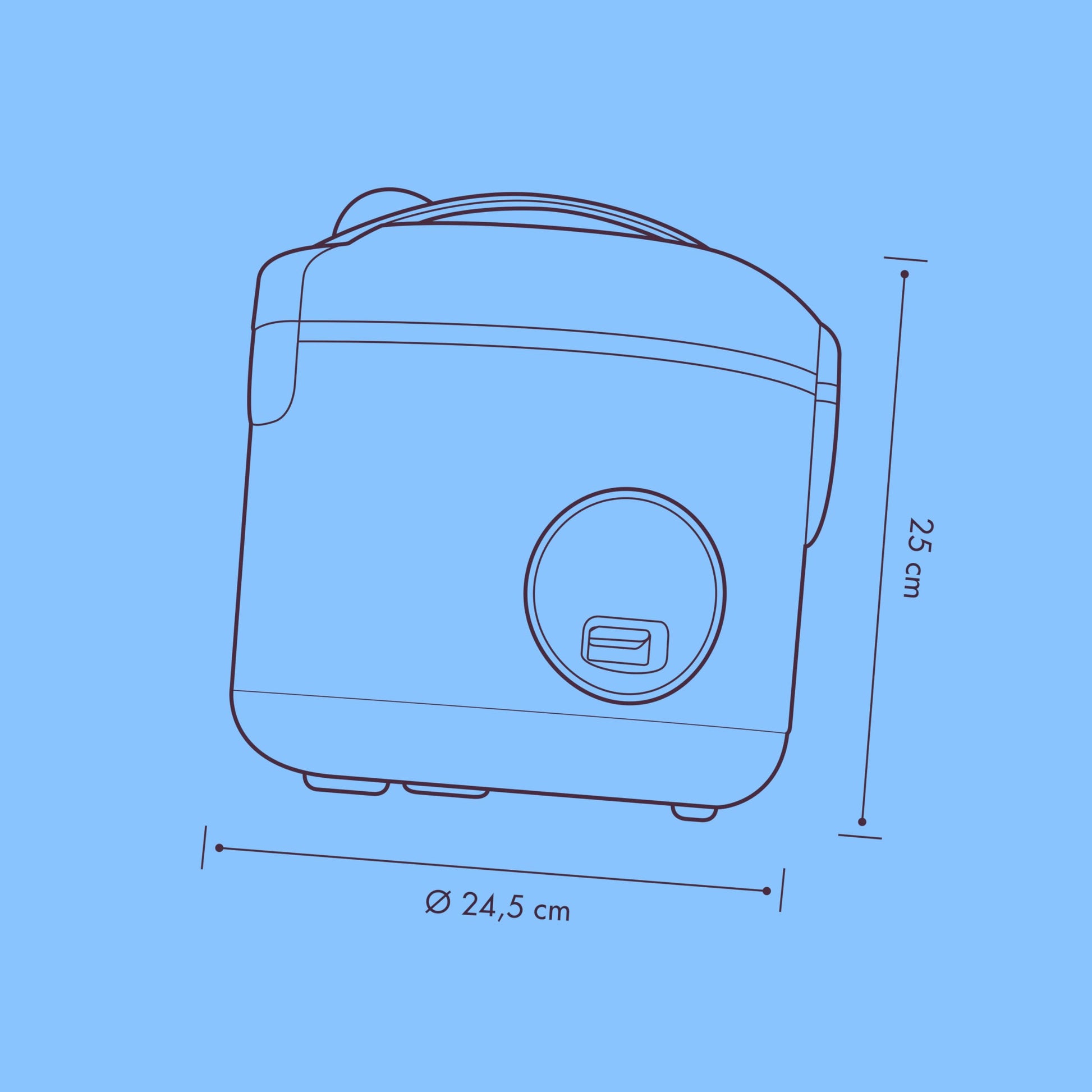 Dank des Fassungsvermögens von 1,2 Litern eignet er sich sowohl für kleine Haushalte als auch für Familien. Eine einzelne Portion weisser Reis ist bereits in nur 15 Minuten fertig. Der mitgelieferte Dämpfeinsatz ermöglicht es Ihnen, gleichzeitig Gemüse schonend zu garen. So bereiten Sie eine vollständige und gesunde Mahlzeit mit minimalem Aufwand zu.