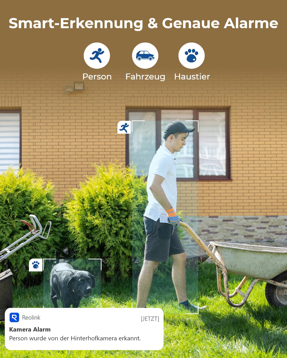 - Erkennung: Intelligente Erkennung von Personen, Fahrzeugen und Haustieren zur Minimierung von Fehlalarmen.