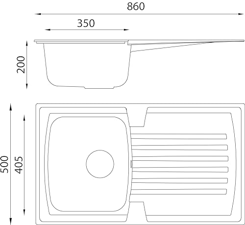 Die Spüle hat die Aussenmasse 86 x 50 cm und ist für den Einbau in Standard-Unterschränke ab 45 cm Breite konzipiert. Da die Spüle reversibel ist, können Sie bei der Montage frei entscheiden, ob sich das Becken auf der linken oder rechten Seite befinden soll.