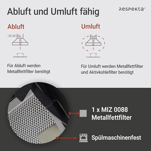 - Nachhaltiger Fettfilter: Ausgestattet mit einem herausnehmbaren und auswaschbaren Metallfettfilter (MIZ 0089) für eine einfache Reinigung und langanhaltende Leistung.