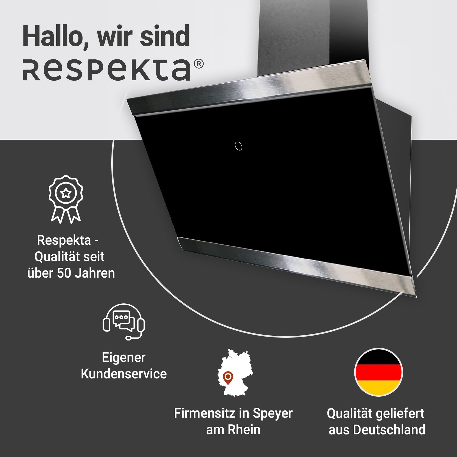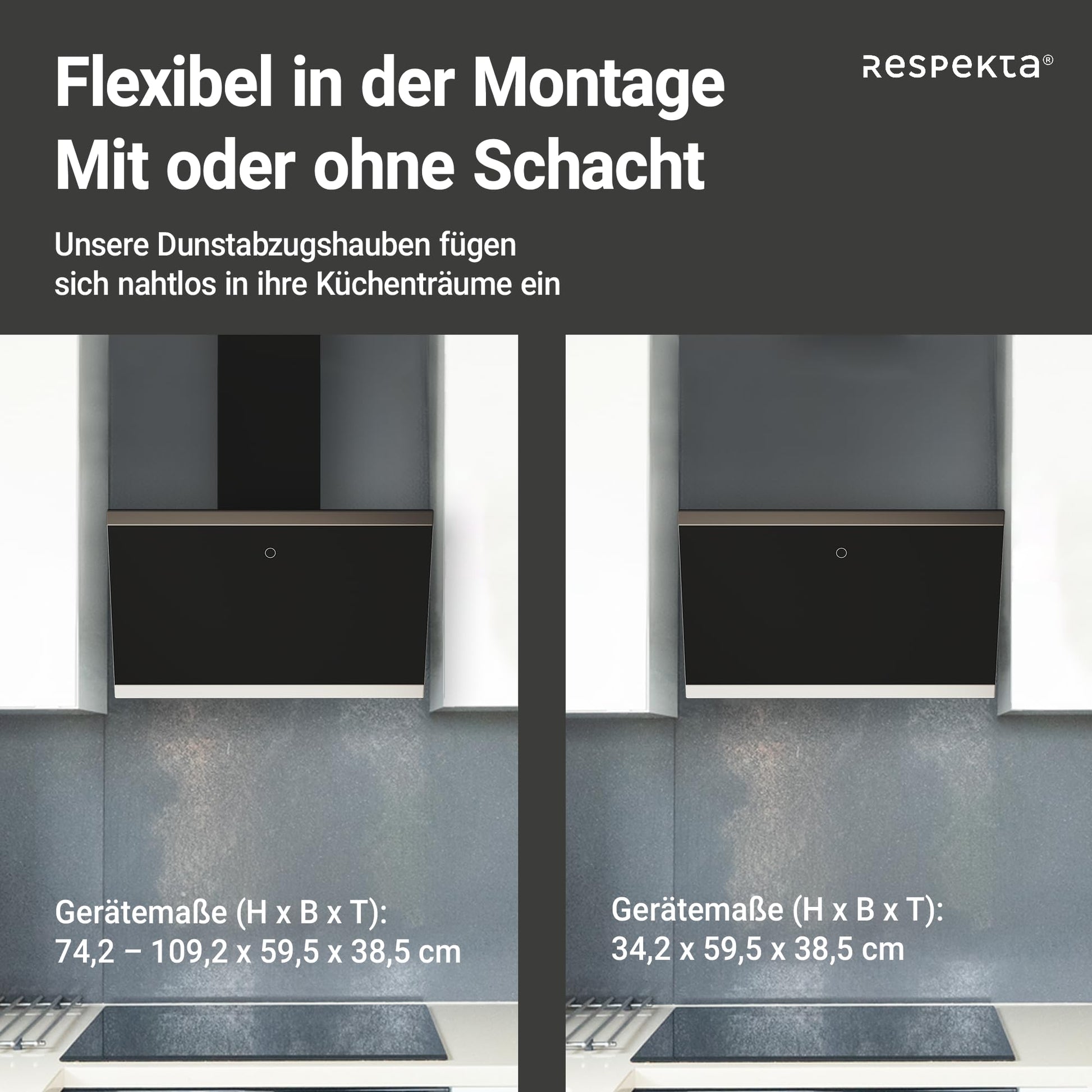 Was sind die Vorteile des schrägen, kopffreien Designs der Respekta Dunstabzugshaube?